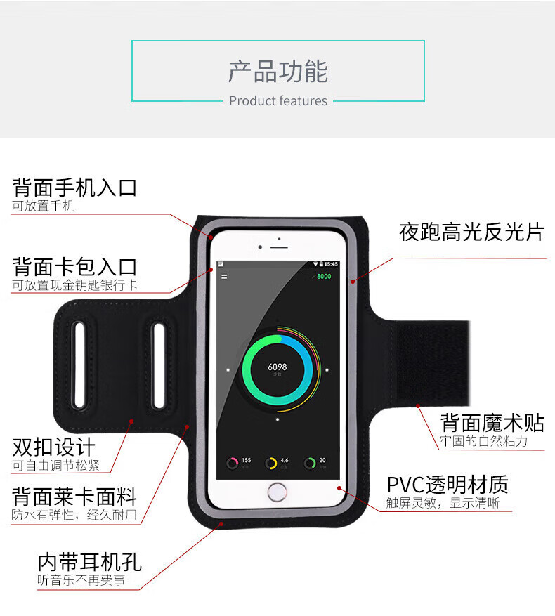 Laishuhui running arm bag with touch screen running mobile phone carrying artifact running equipment wrist bag mobile phone case sports gray touch screen/reflective strip/headphone hole