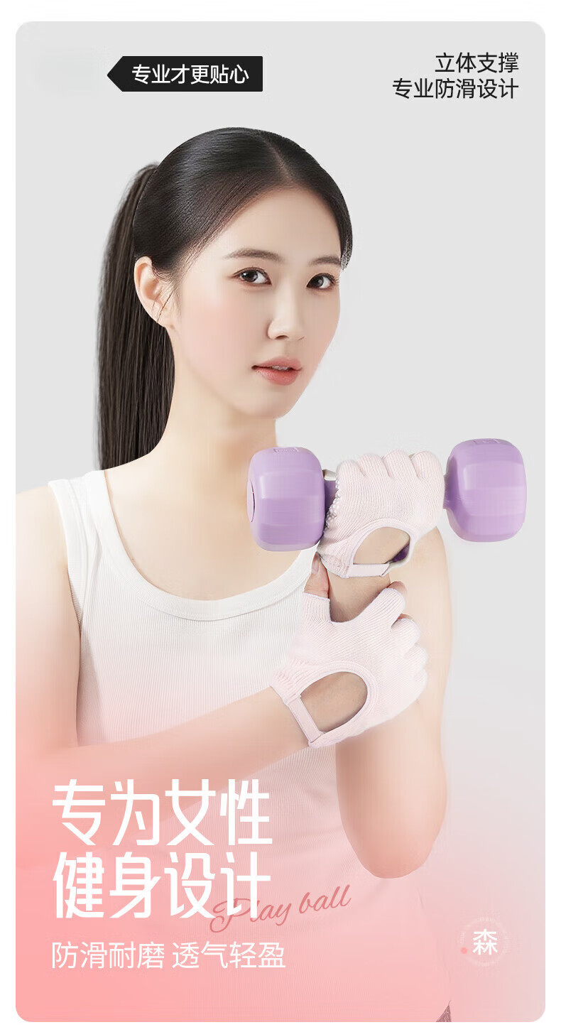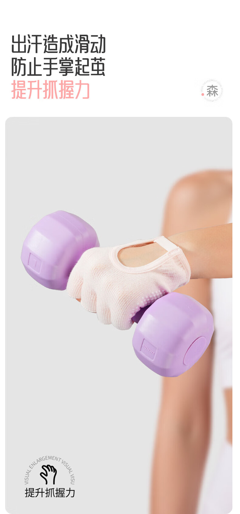 First conception of fitness gloves for women, thin Pilates yoga special kettlebells and dumbbells equipment training, non-slip and anti-callousing exercise, purple/reject callousing/80% pure cotton, soft and breathable