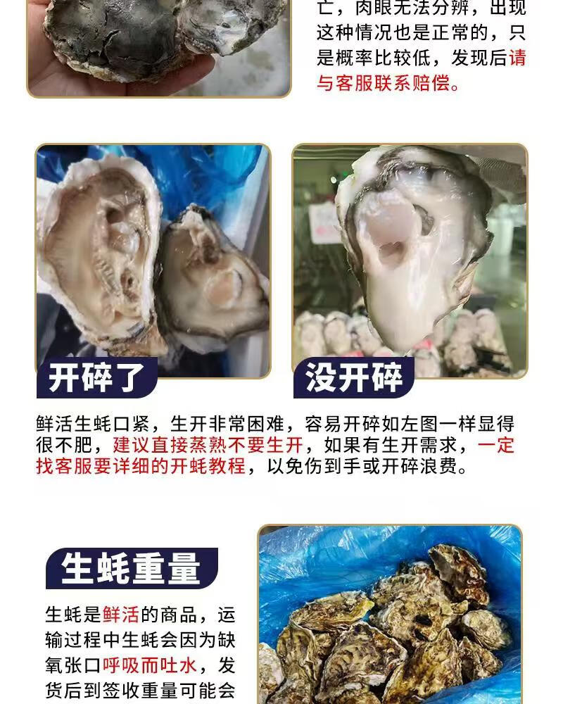 Fresh Rushan oysters, fresh oysters, 5 Jin Jin equal to 0.5 kg box, 4XL large oysters (9-14 pieces per box), net weight 5 Jin Jin, equal to 0.5 kg oysters
