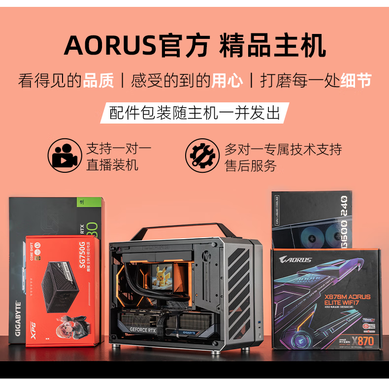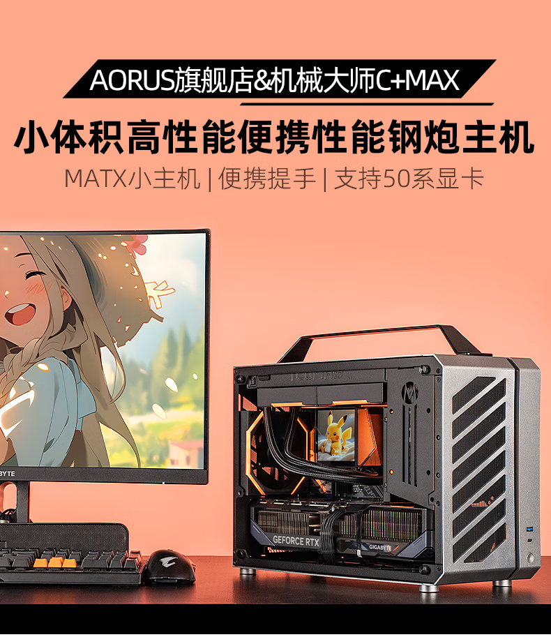Gigabyte RTX5090D/V2/5080 Mechanical Master C+MAX high-end mini water-cooled game console DIY assembly computer design portable small steel gun desktop machine six 9950X3D/64G/4T/5090DV2