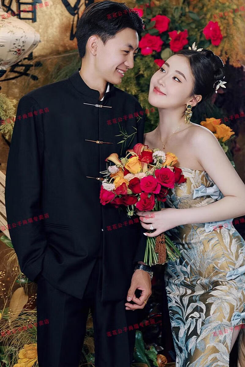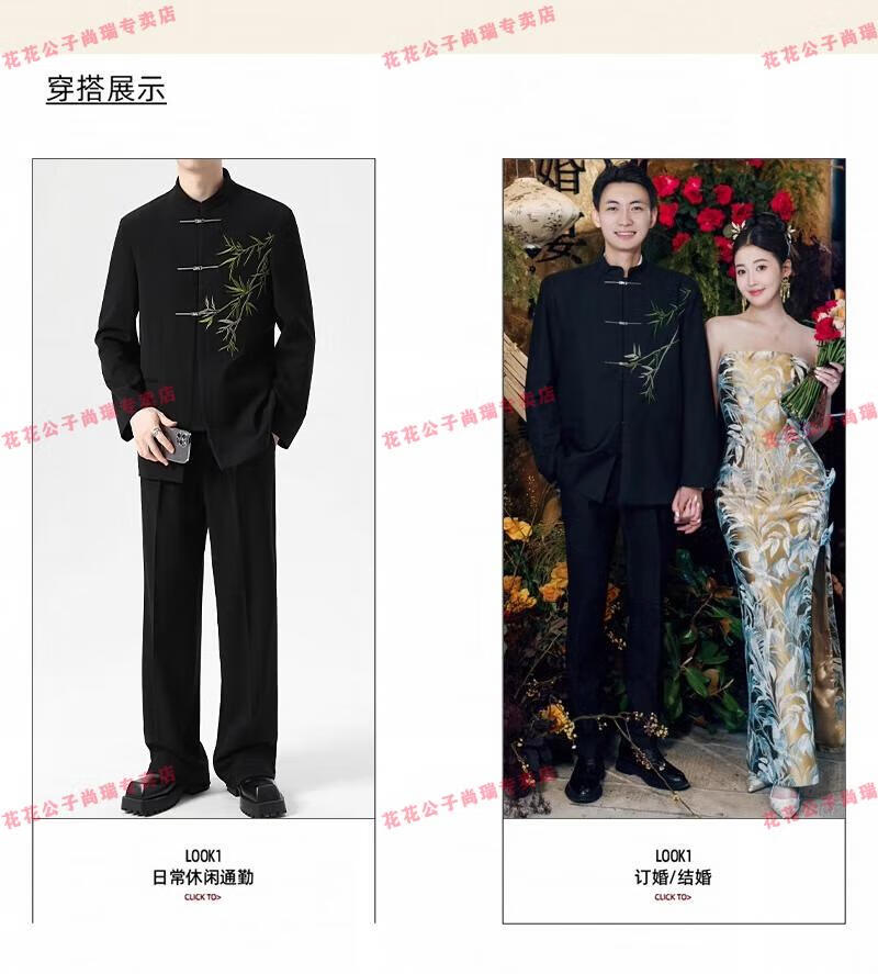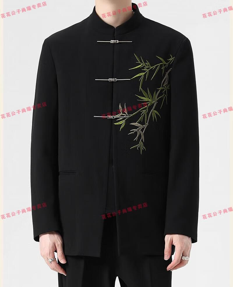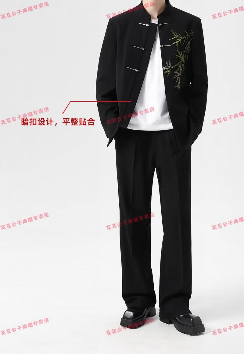 Playboy New Chinese Style National Style Casual Suit Suit for Men Spring and Autumn Chinese Style Embroidered Mao Suit Hanfu Men's Clothes Black Jacket + Tailor-made Pants Two-piece Set L High Quality