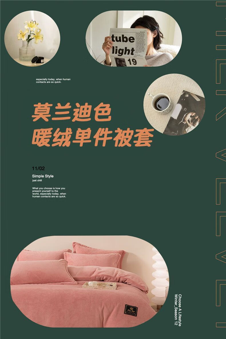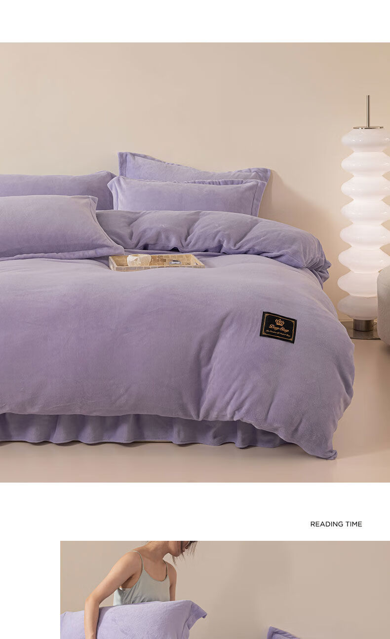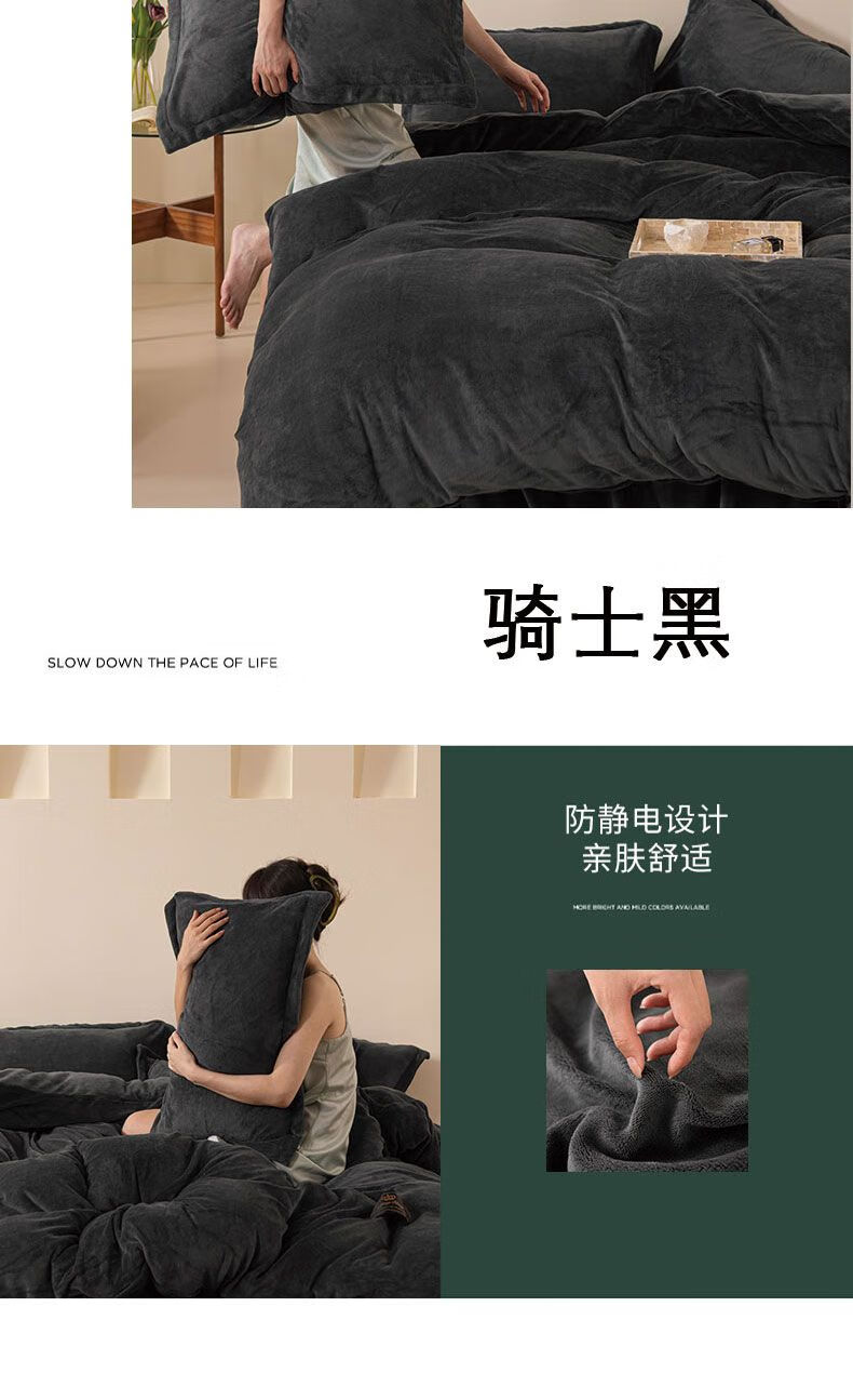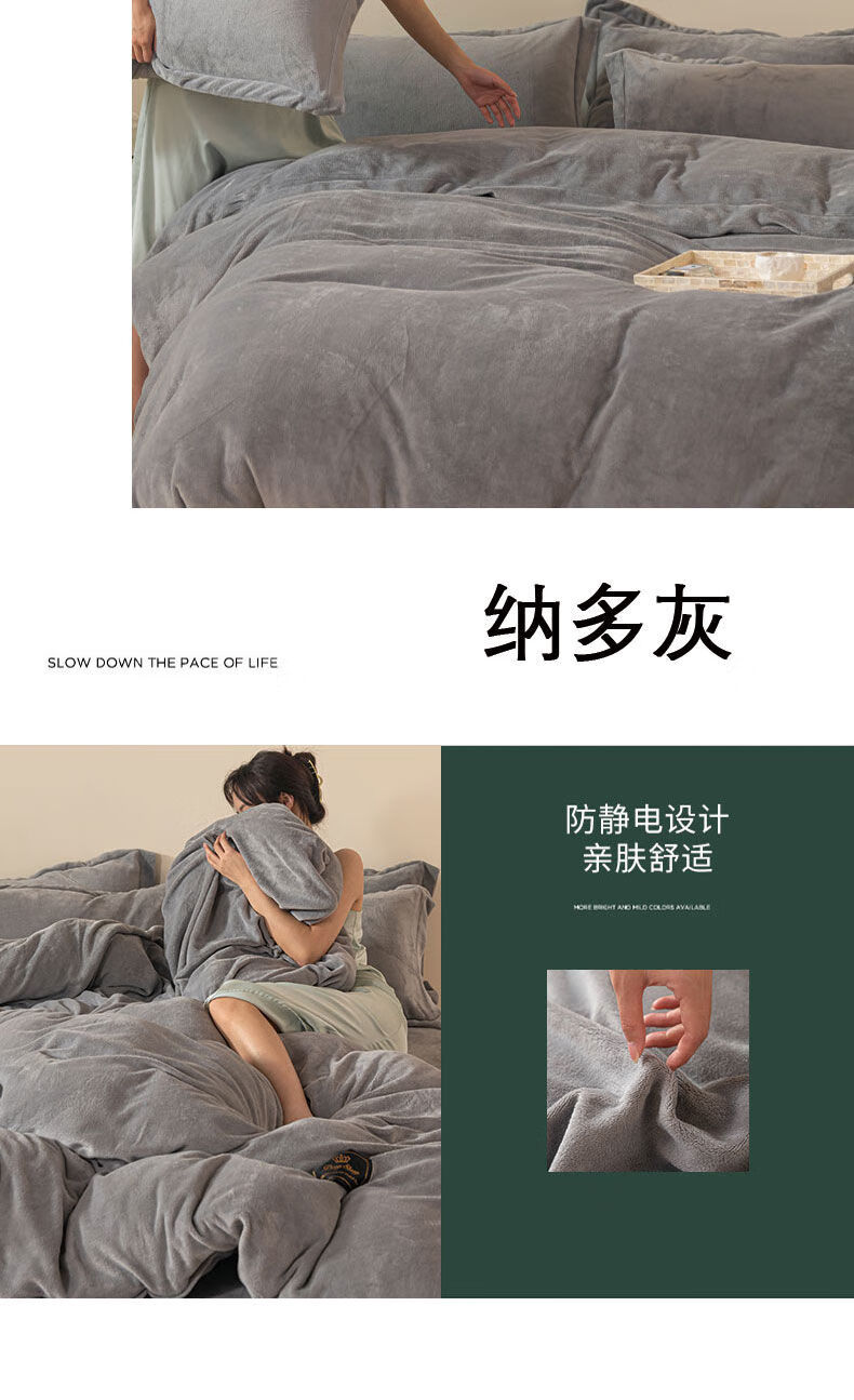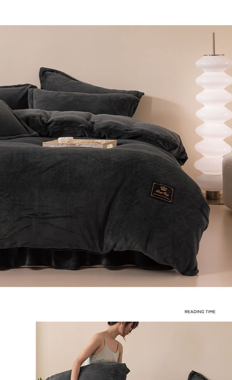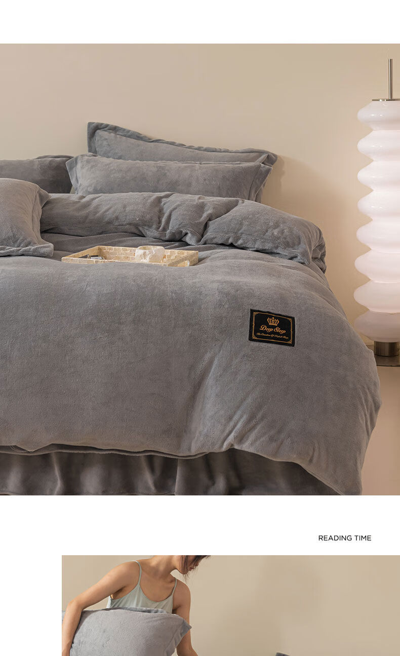 Fu丨Anna winter milk velvet single-piece quilt cover thickened baby velvet quilt cover warm single and double solid color dormitory wilderness gray-fast heating anti-static quilt cover + pair of pillowcases 180cm*200cm
