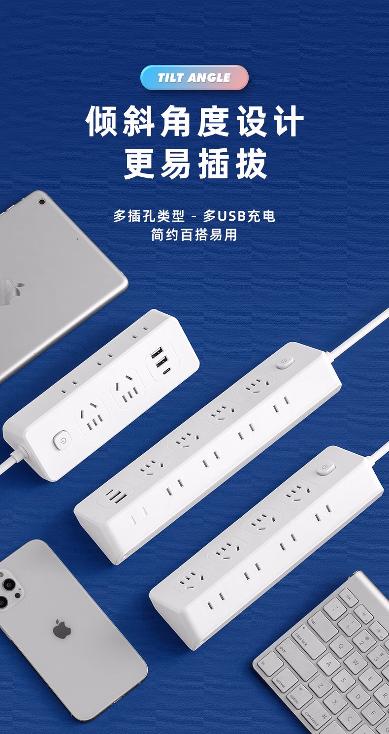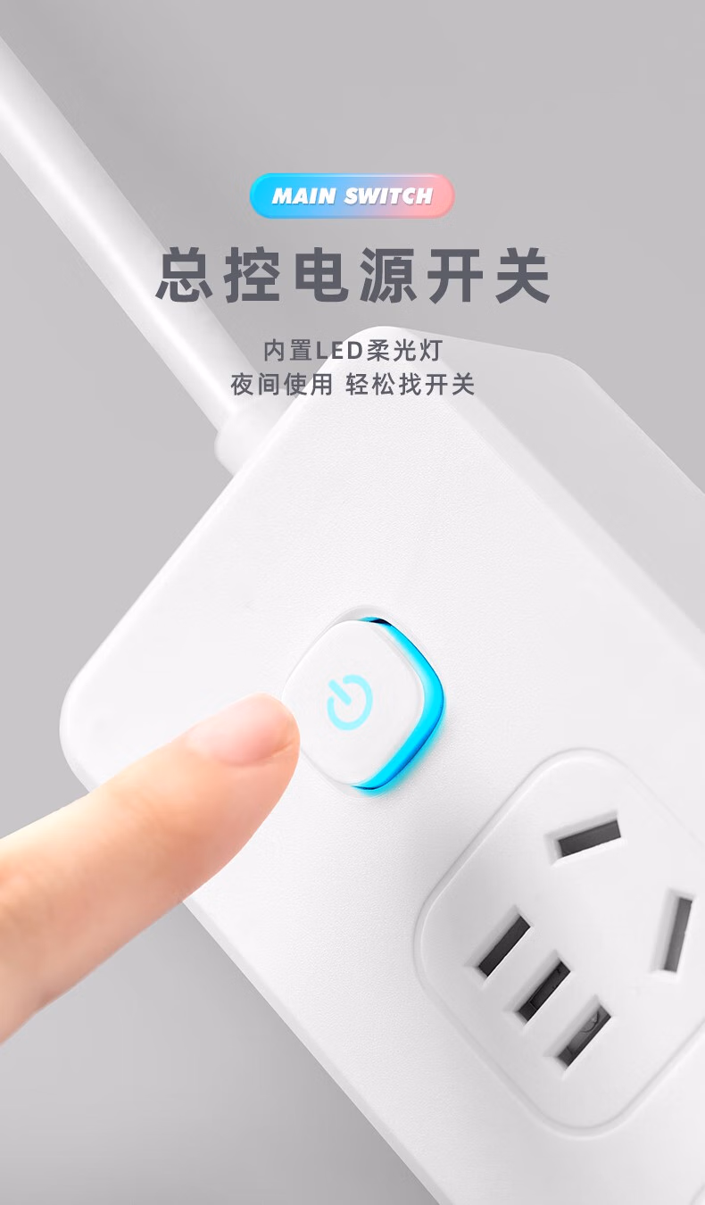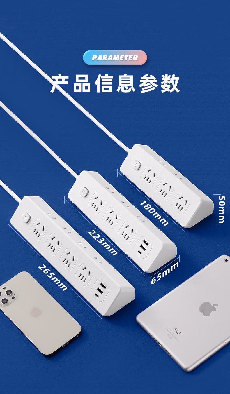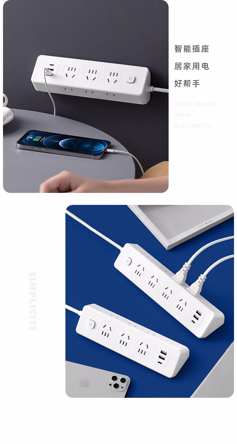 Xiaomi Youpin multi-functional socket panel multi-hole socket dormitory USB plug-in board wiring A4 with 2USB+1Type-C 0.8 meters