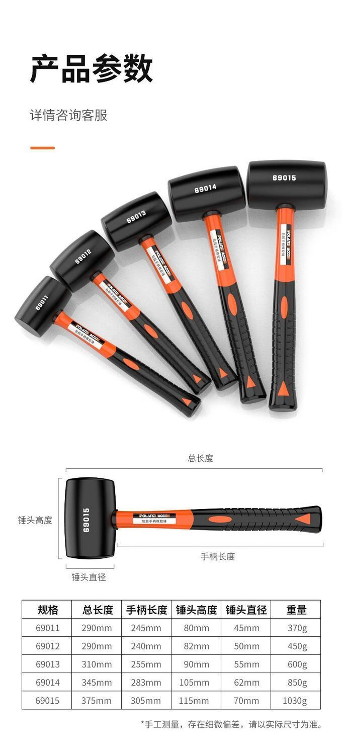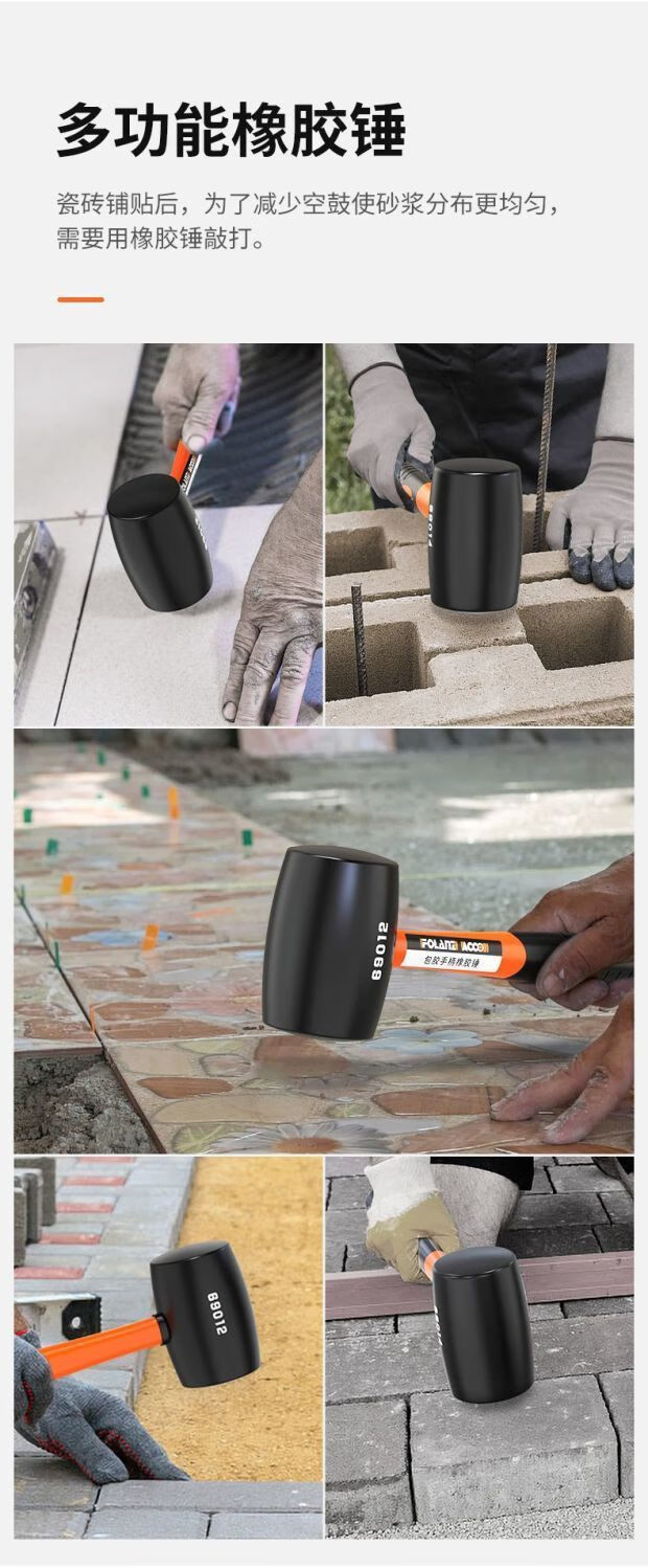 JCZS German quality rubber hammer for nylon ceramic tiles special artifact rubber hammer solid leather hammer decoration tool rubber solid hammer grade rubber handle (500 type) rubber hammer