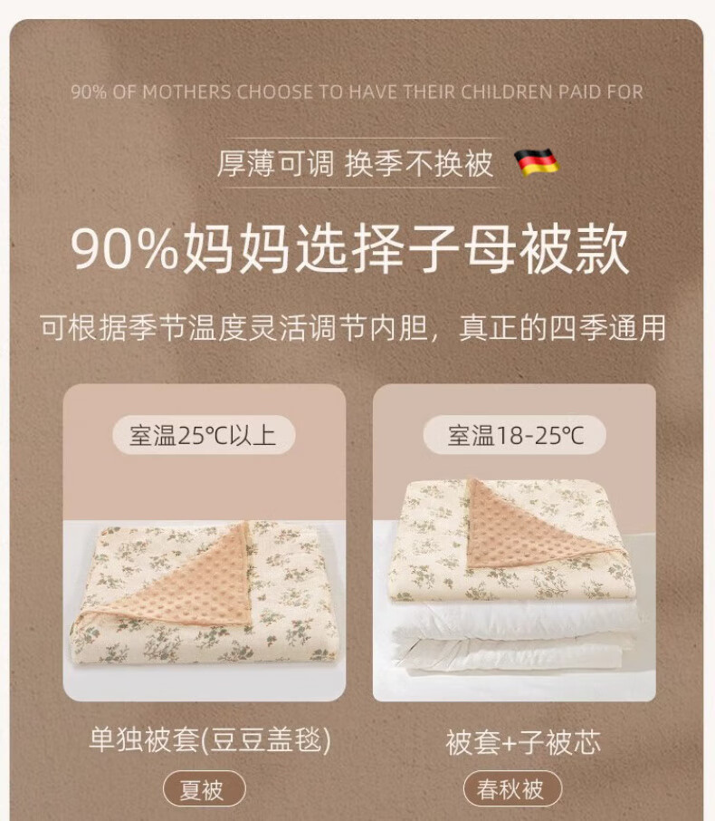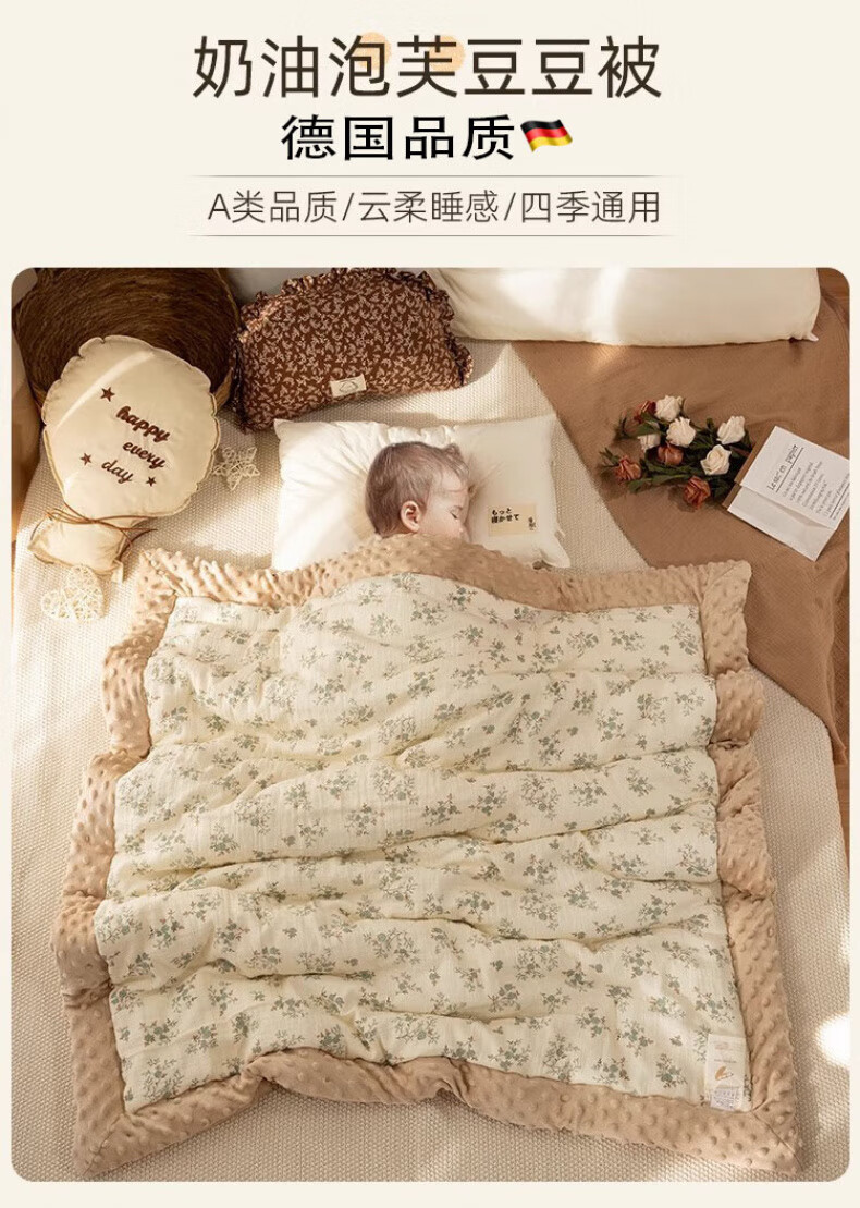 JCZS German brand baby beanie quilt baby small quilt type A pure cotton all-season newborn children's quilt spring and autumn German quality Vanilla Story-beanie quilt cover-core not included 120x100cm
