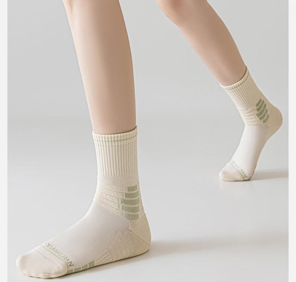 Qinjian Marathon Sports Socks Women's Outdoor Mountaineering Mid-Leg, Cloud White, One Size