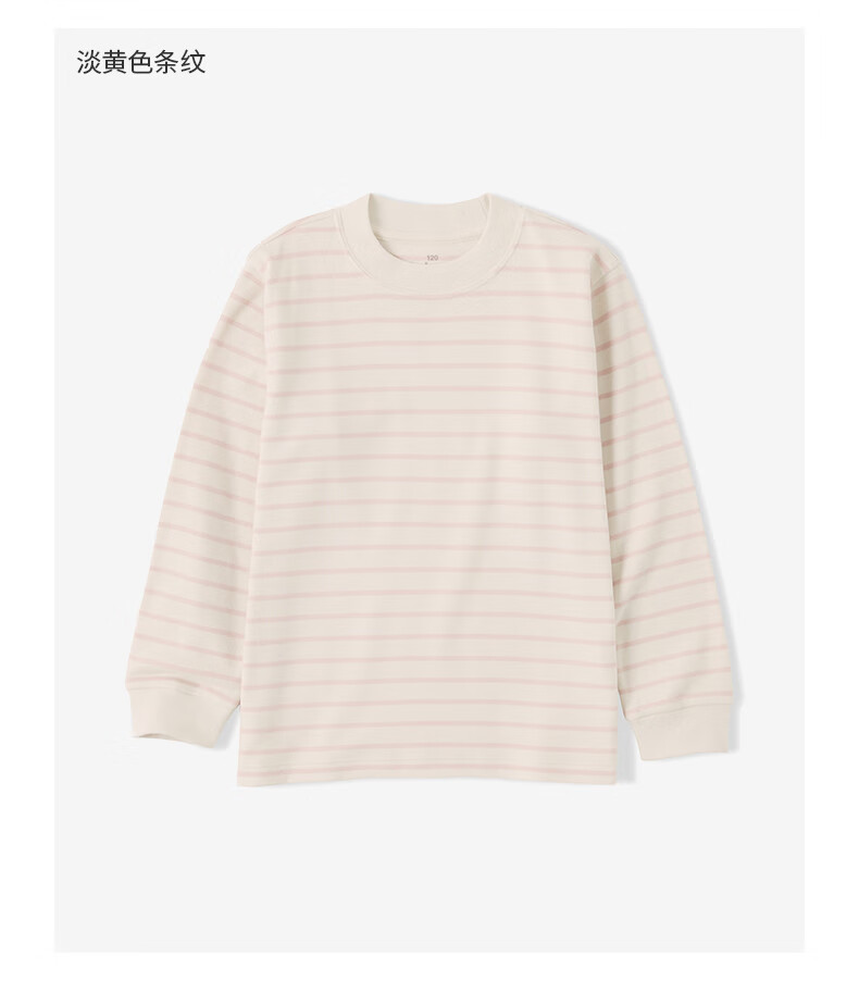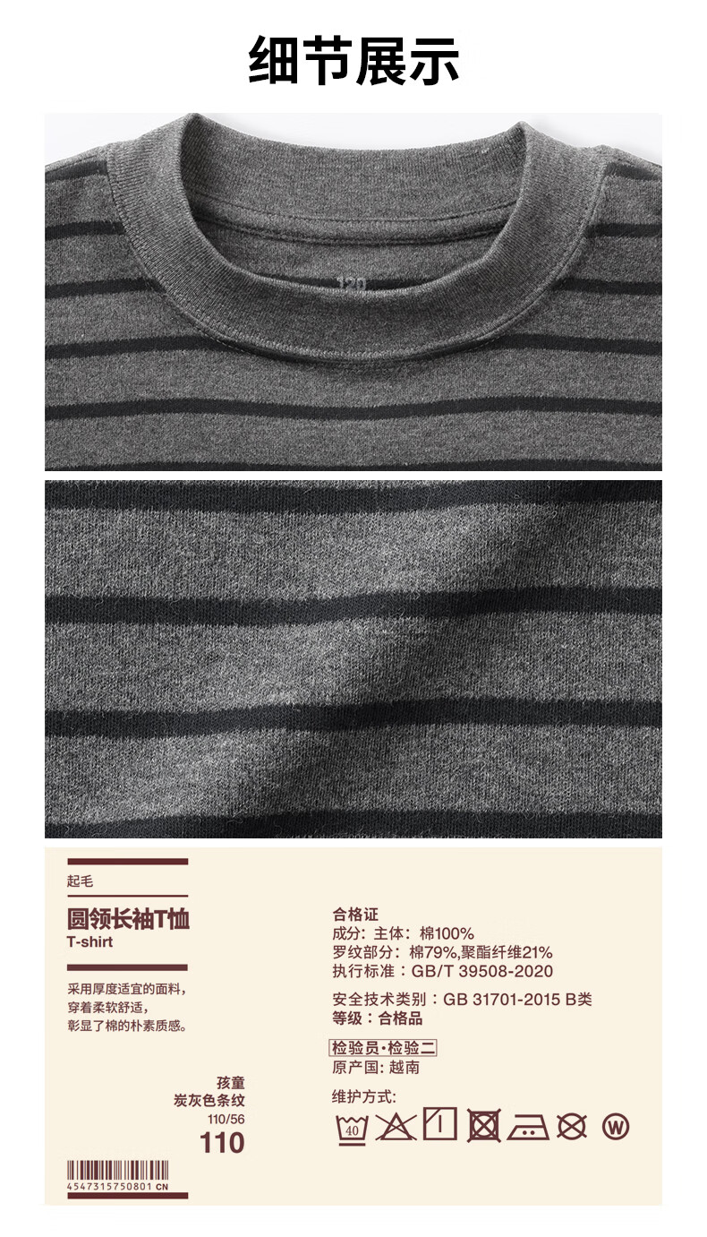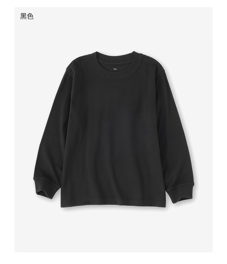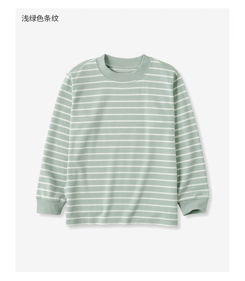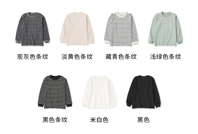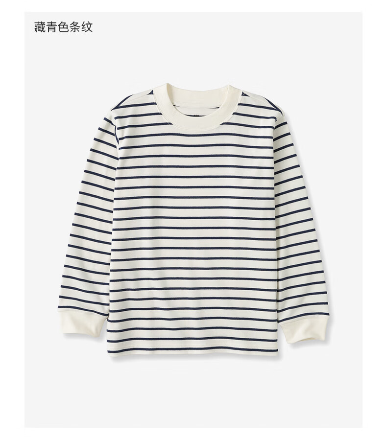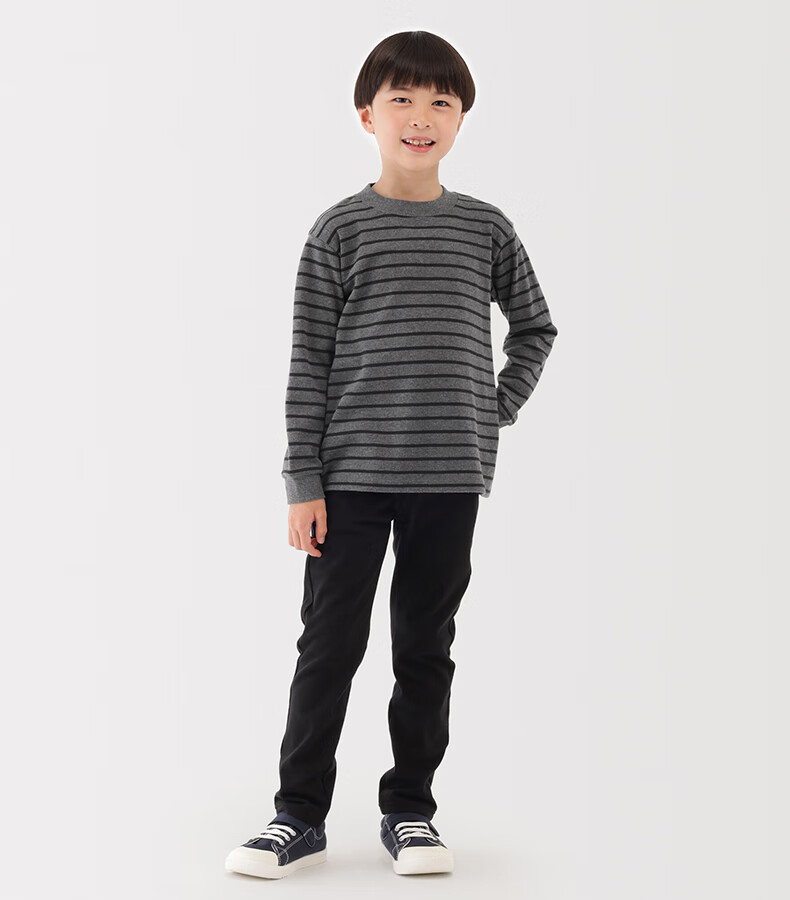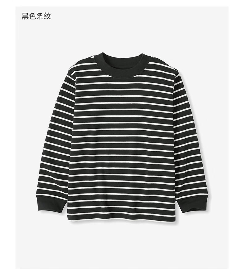 MUJI Big Children's Fleece Round Neck Long Sleeve T-shirt Children's Bottoming Shirt Children's 25 Years Winter CB1P7A5A Black Stripes 130/64A