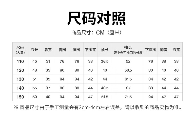 Size (cm) 42 44 46 48 50