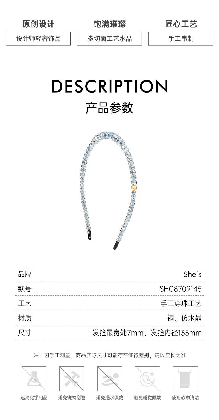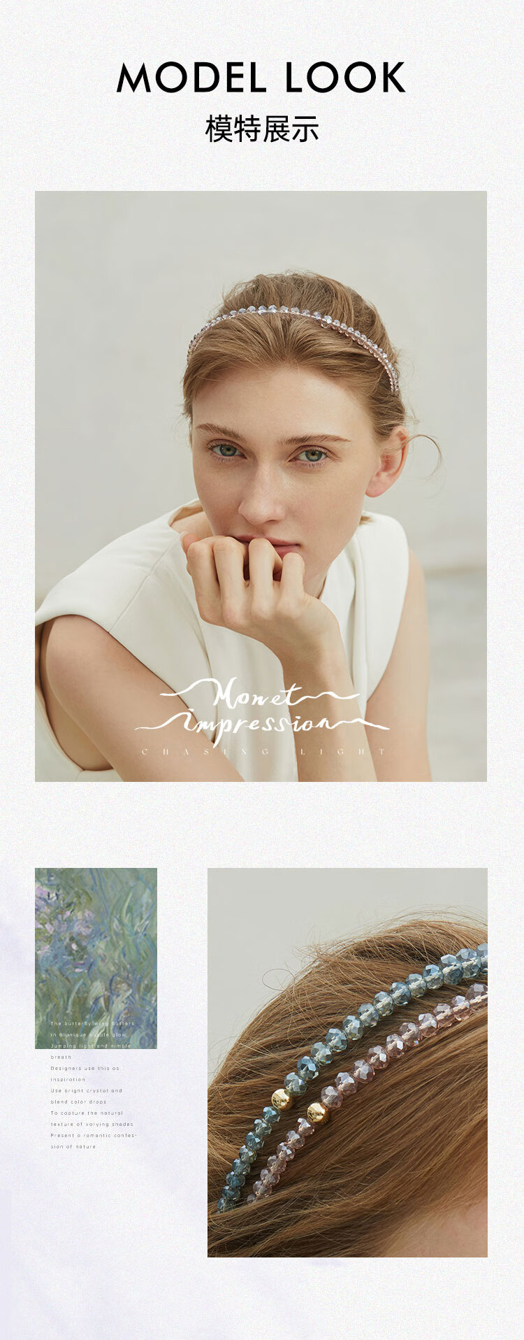 She s Akiko Monet impression light luxury craft crystal romantic sparkling hair hoop hair clip hair headband hair accessories birthday gift blue C0
