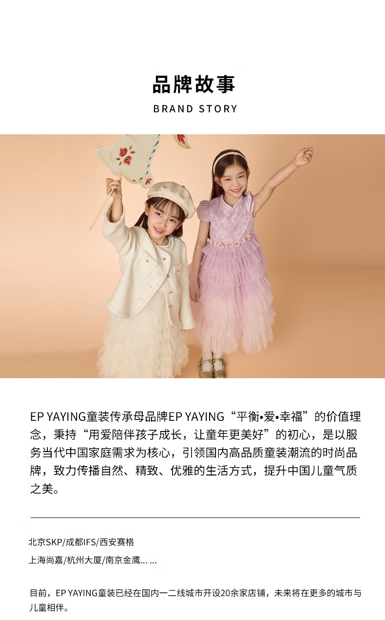 EP YAYING children's clothing autumn girls new style new Chinese style mesh splicing dress pink 160
