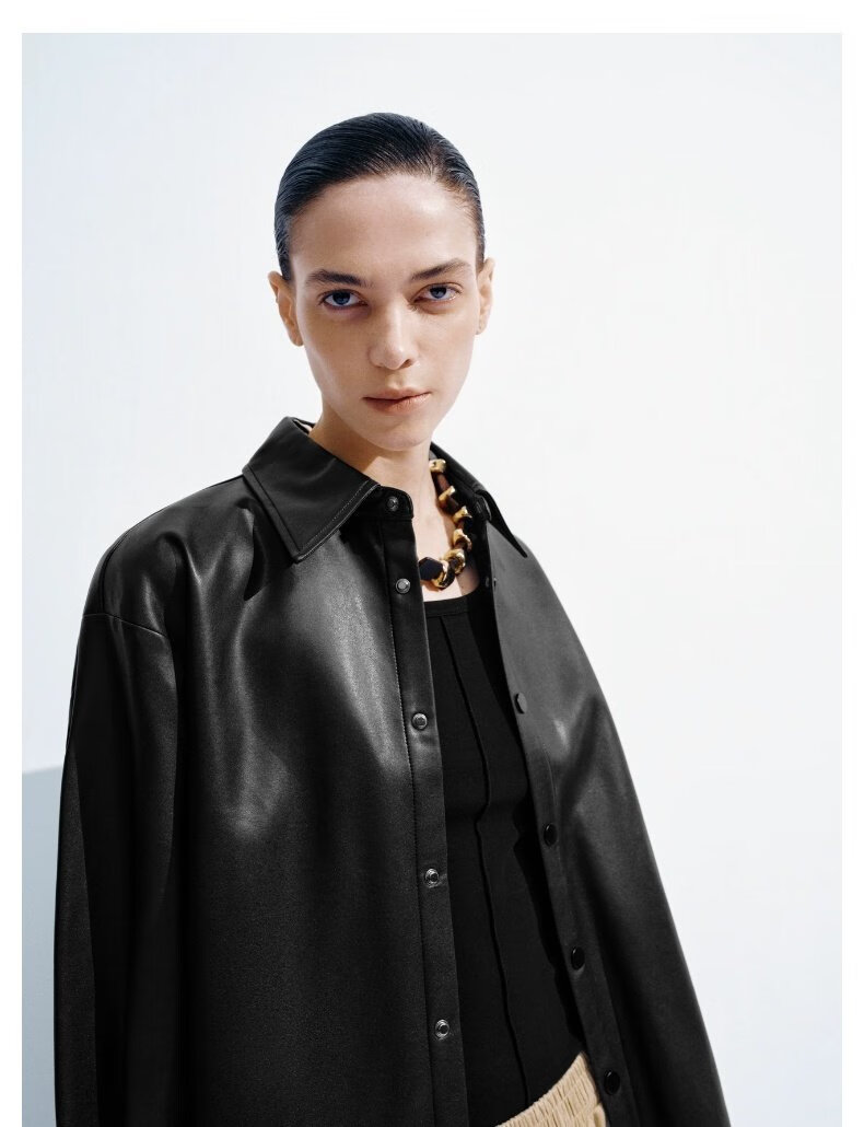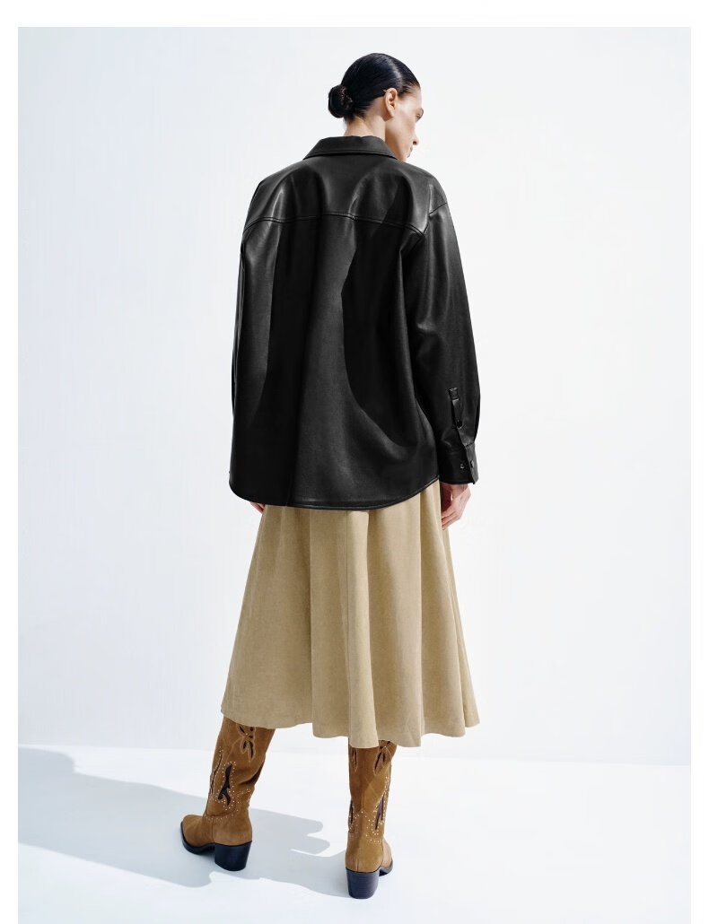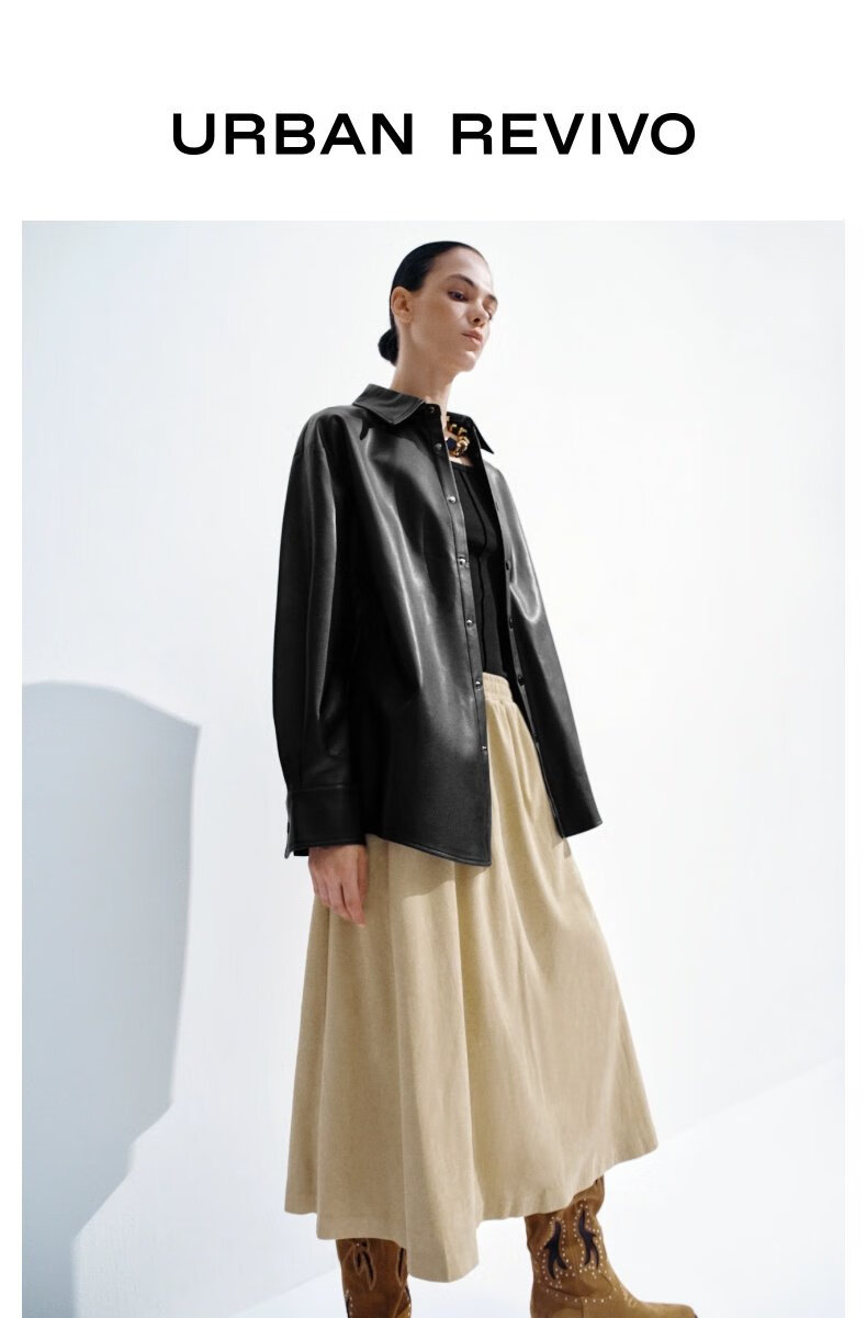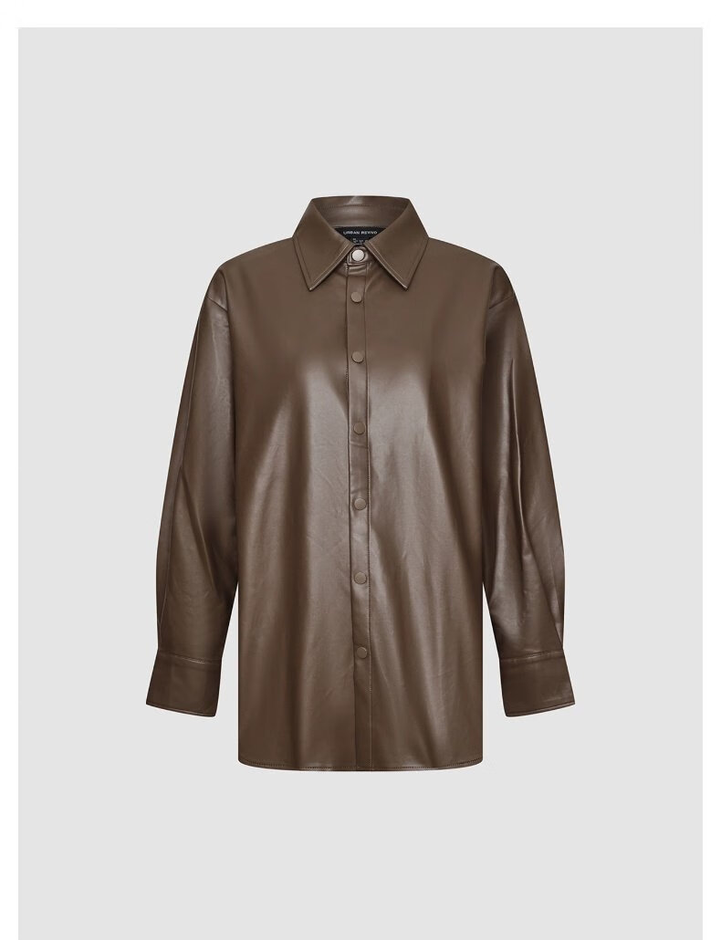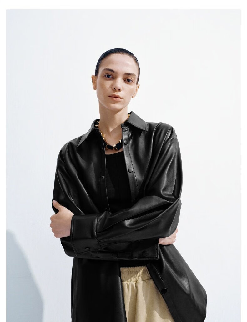 UR show same style 2026 spring new women's modern PU loose blouse shirt UWM250120 black S