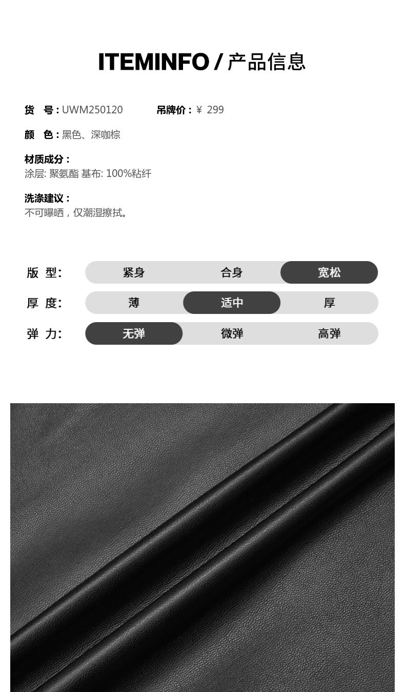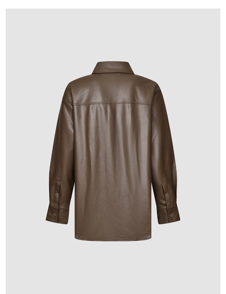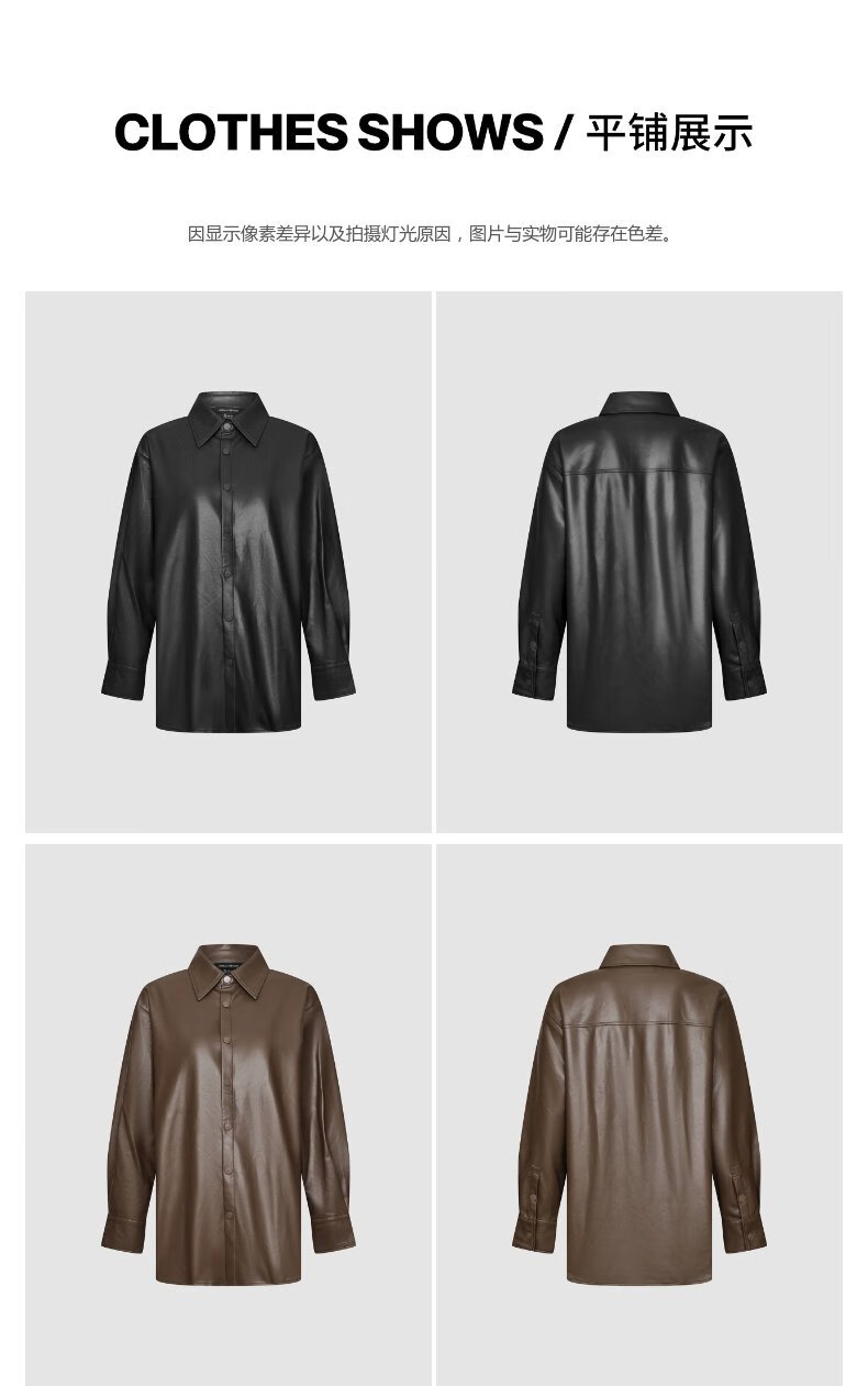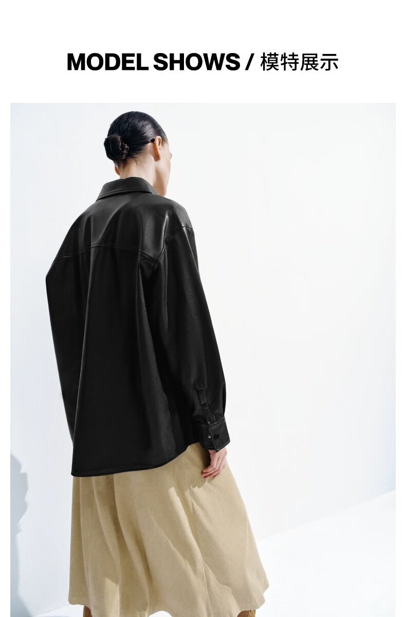 UR show same style 2026 spring new women's modern PU loose blouse shirt UWM250120 black S