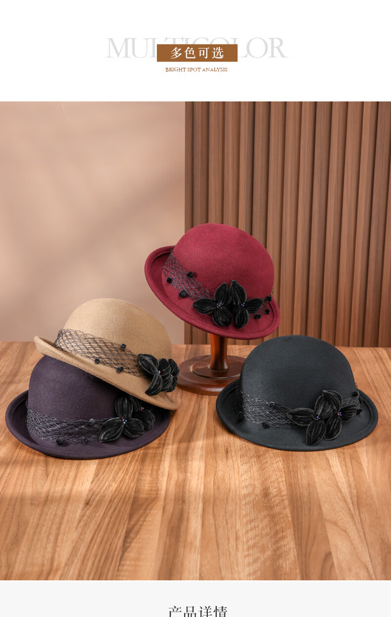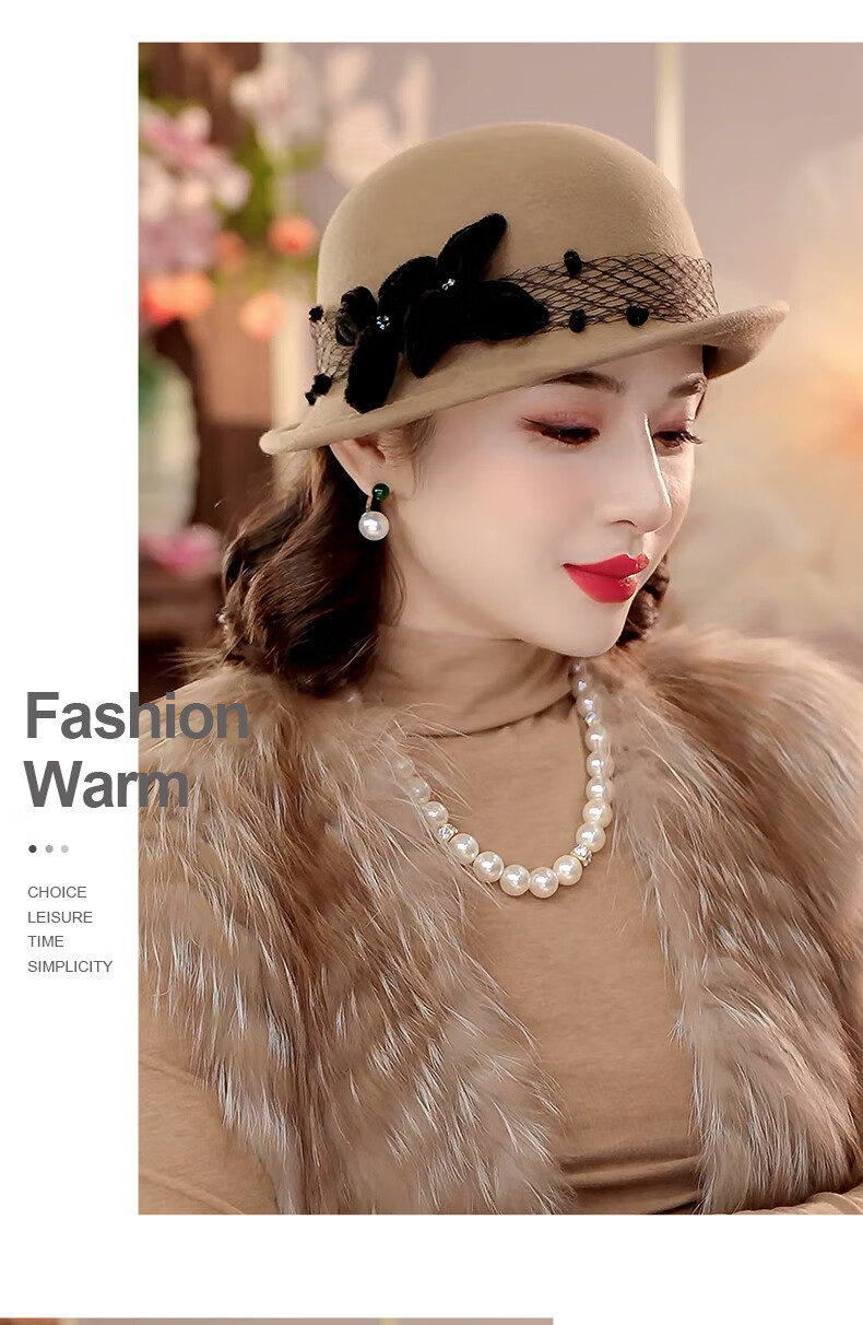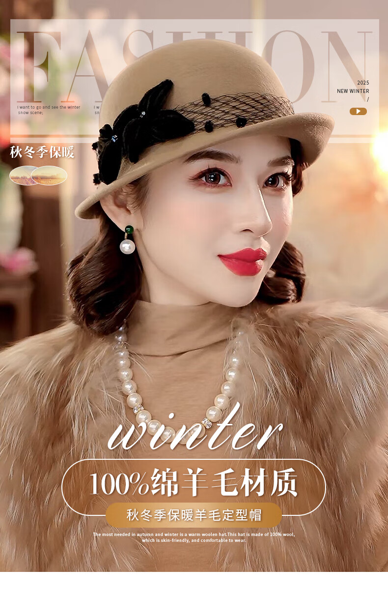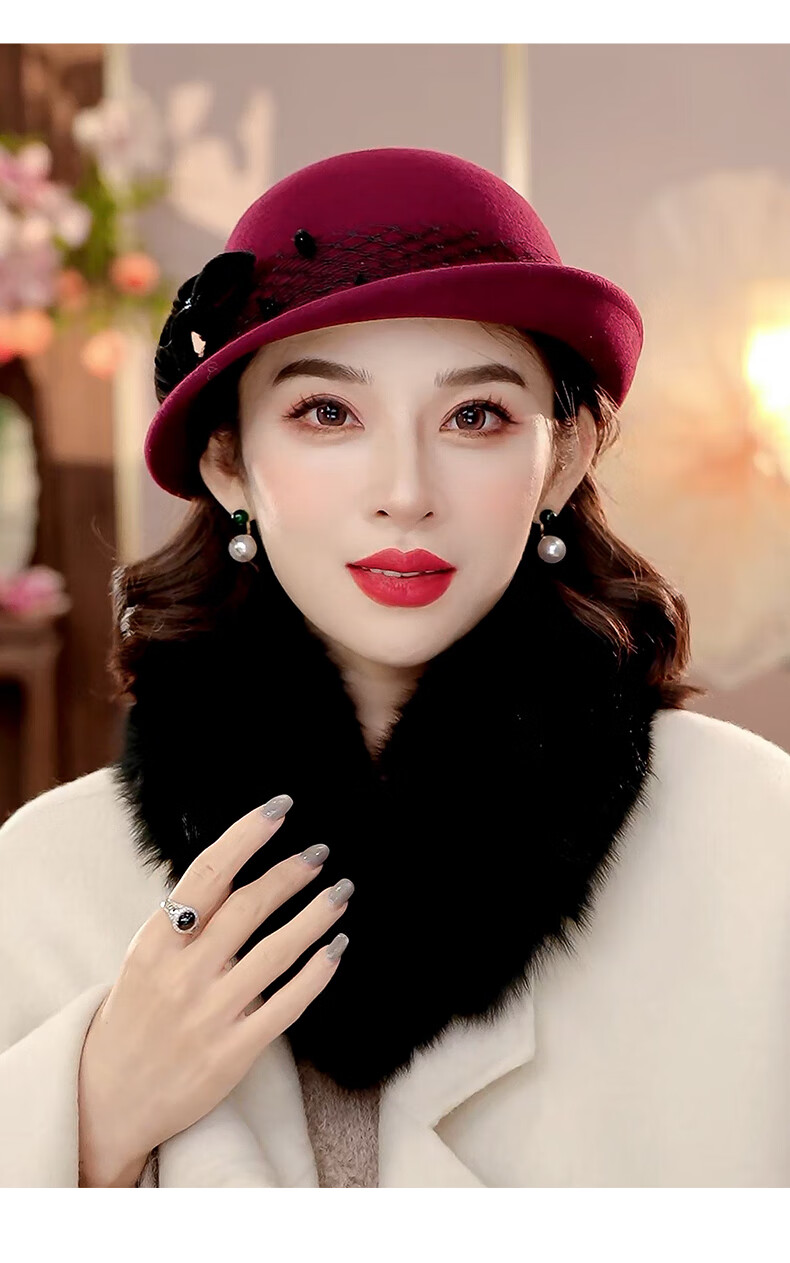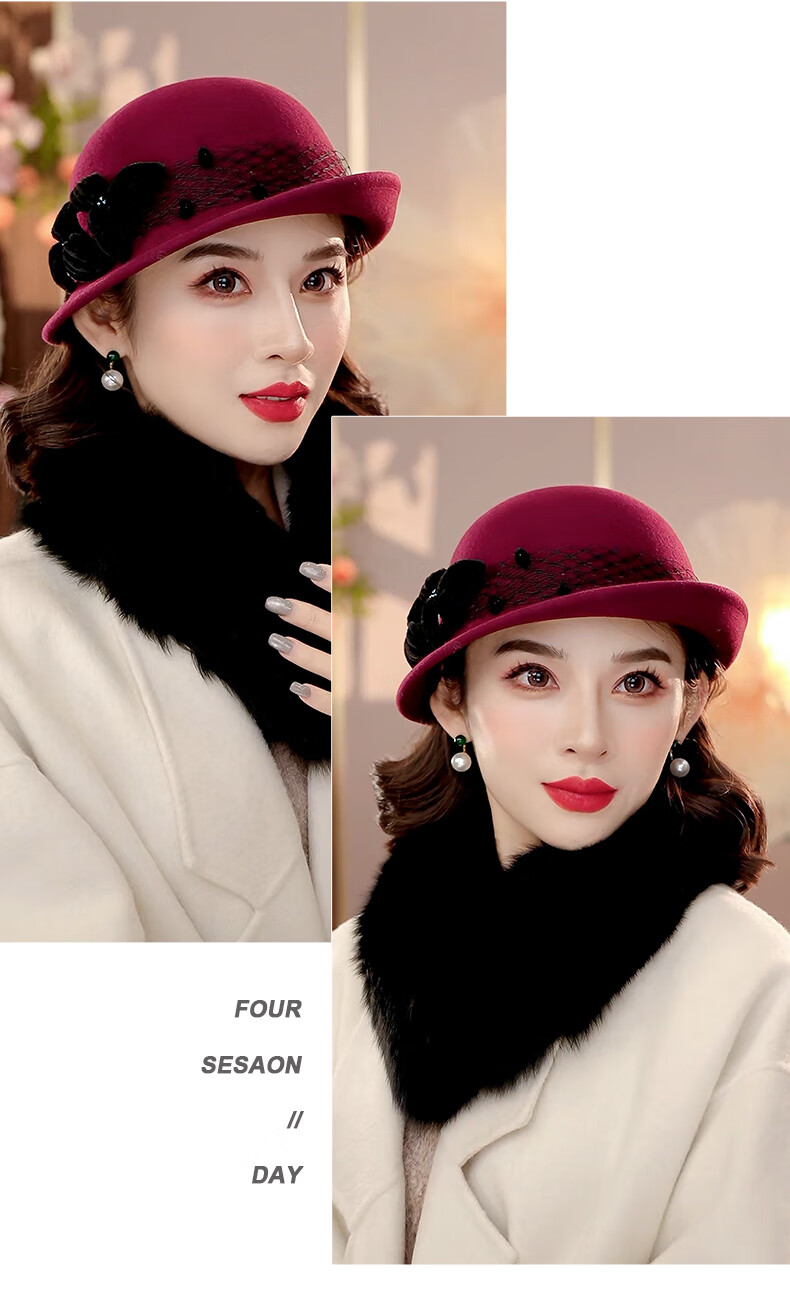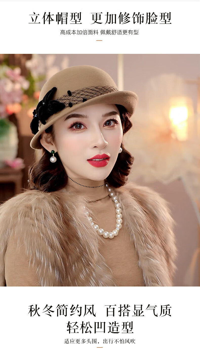 PTAH2025 autumn and winter new style dome shaped top hat wool wool curling retro warm fashion beret hat black