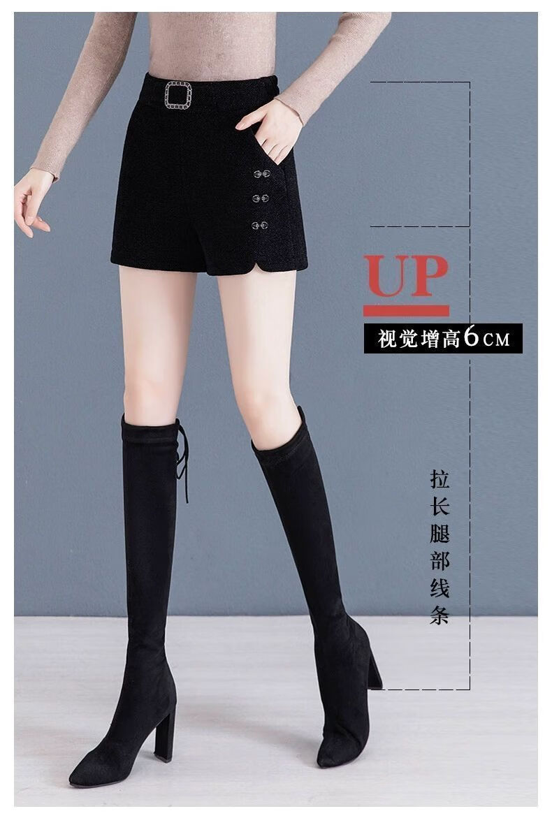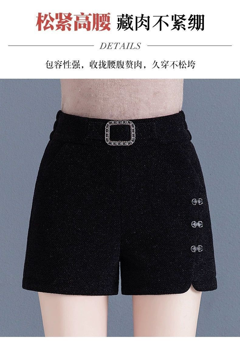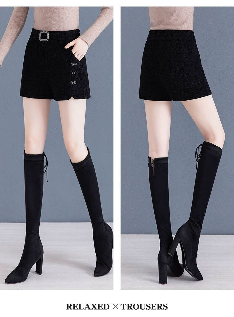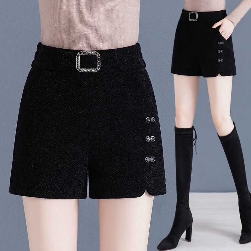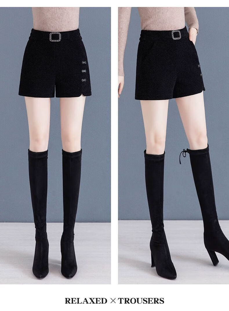 LangSha Woolen Shorts Women's Autumn and Winter 2025 New High Waisted Loose Slim Versatile Black Velveteen Outerwear Slit Boot Pants Women 2XL Recommended 128-138 One Size Black