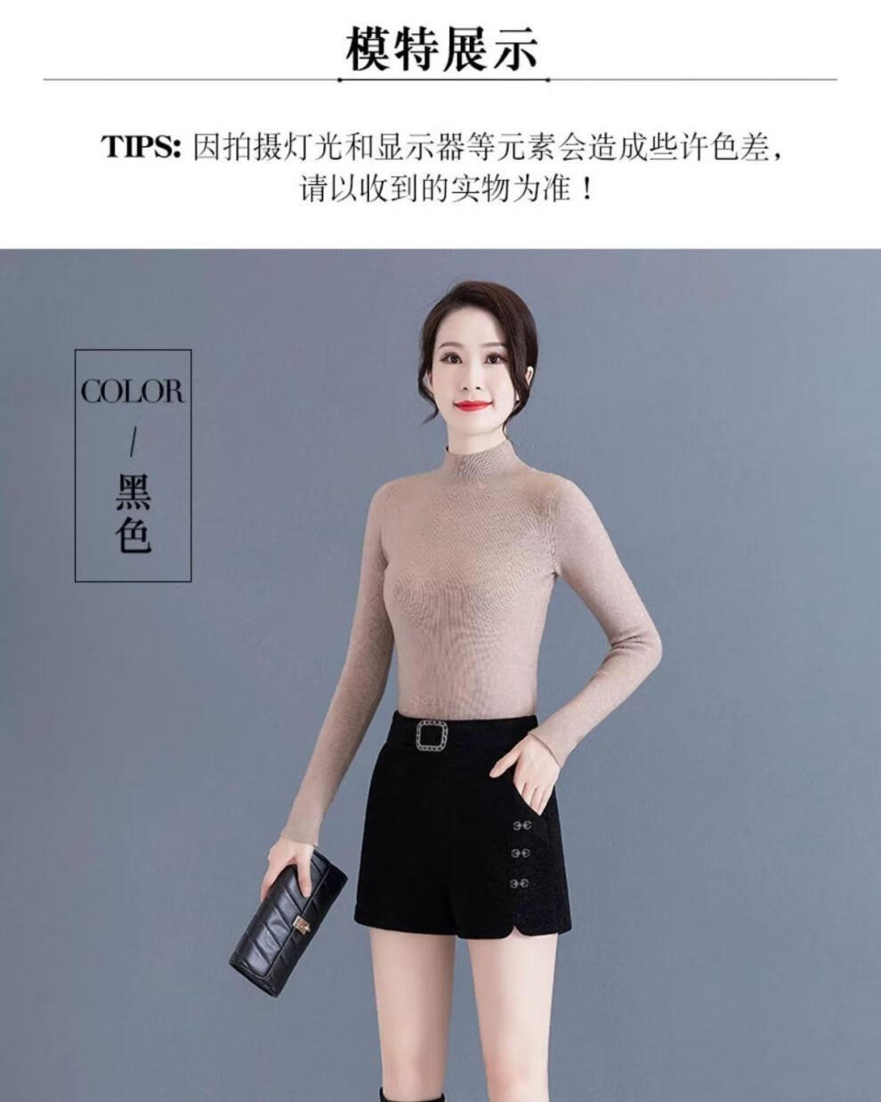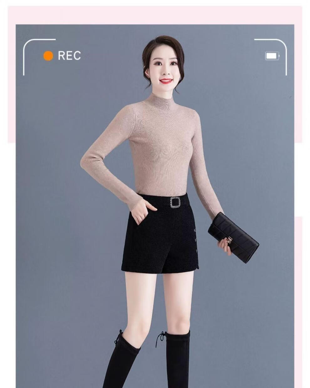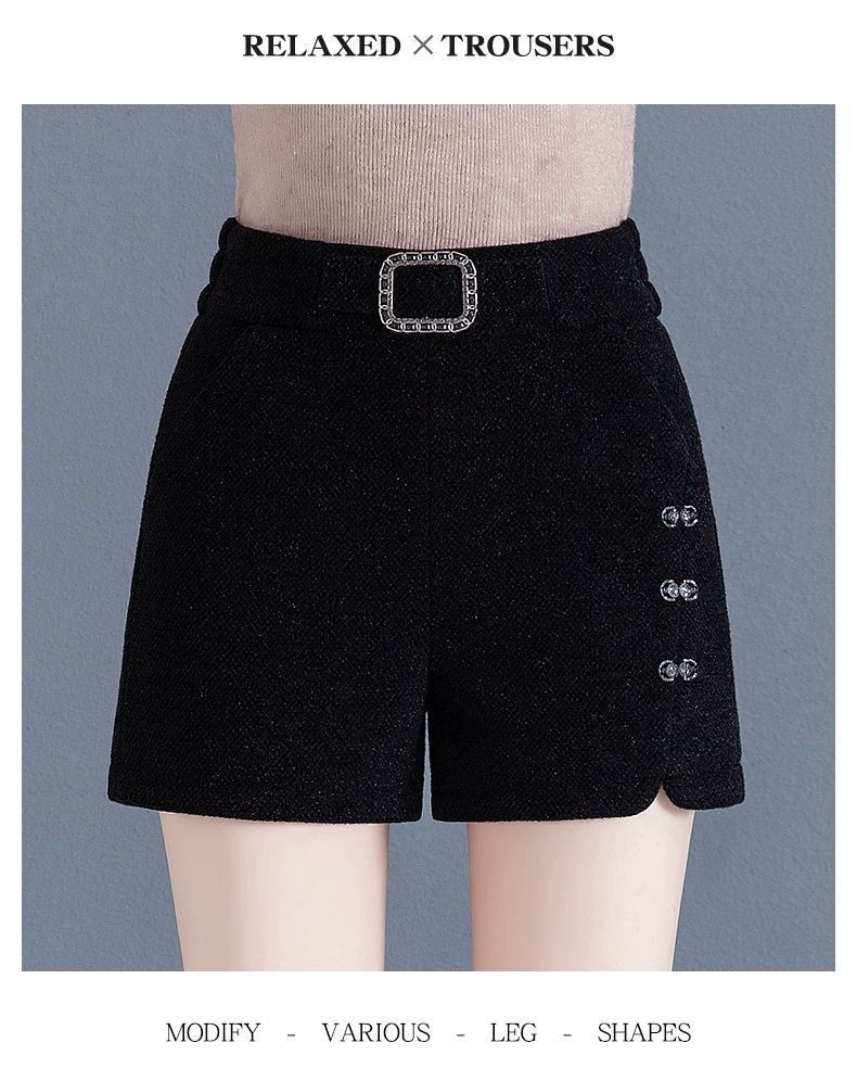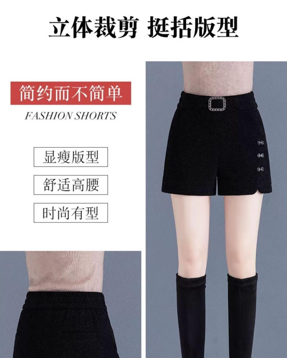 LangSha Woolen Shorts Women's Autumn and Winter 2025 New High Waisted Loose Slim Versatile Black Velveteen Outerwear Slit Boot Pants Women 2XL Recommended 128-138 One Size Black