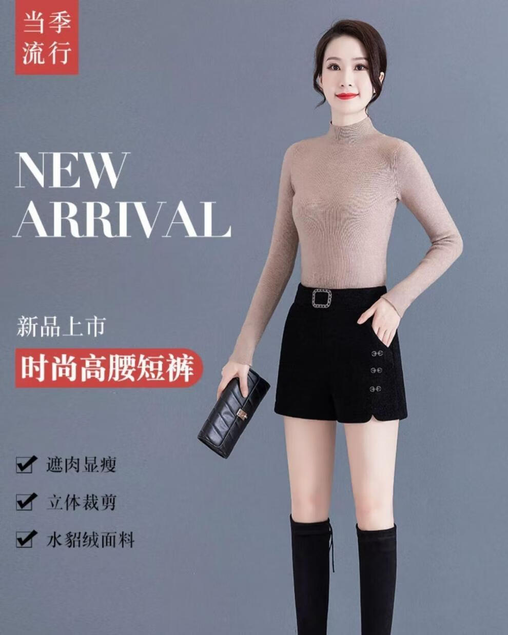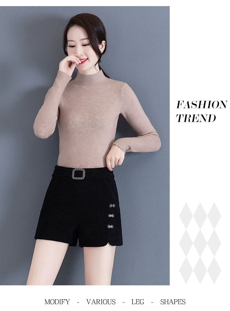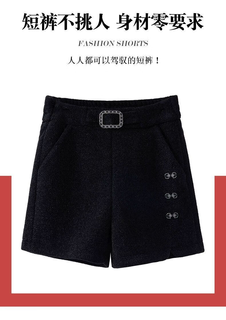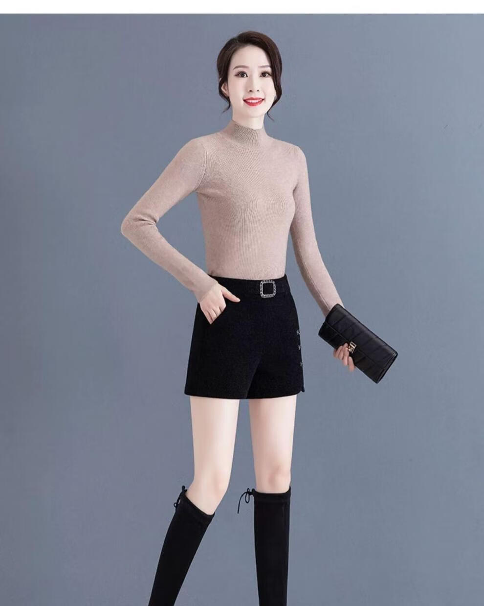 LangSha Woolen Shorts Women's Autumn and Winter 2025 New High Waisted Loose Slim Versatile Black Velveteen Outerwear Slit Boot Pants Women 2XL Recommended 128-138 One Size Black