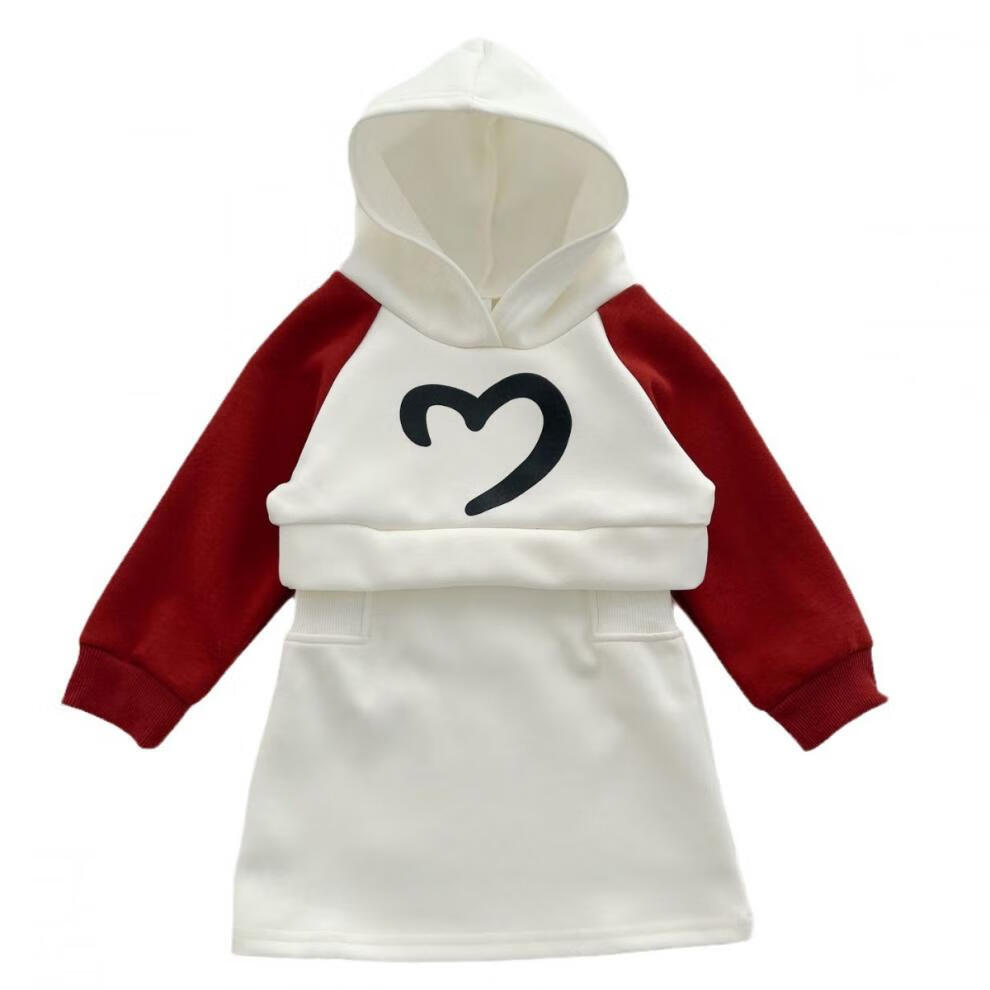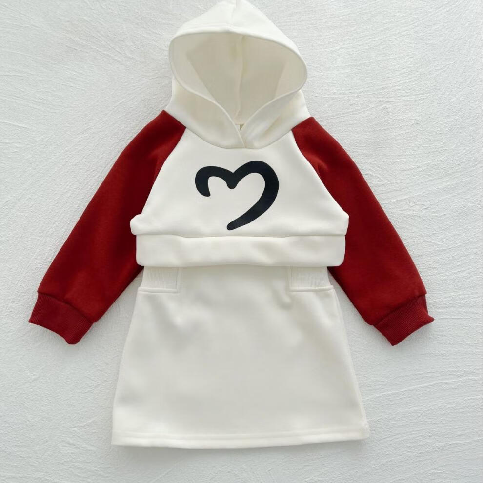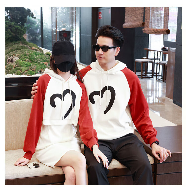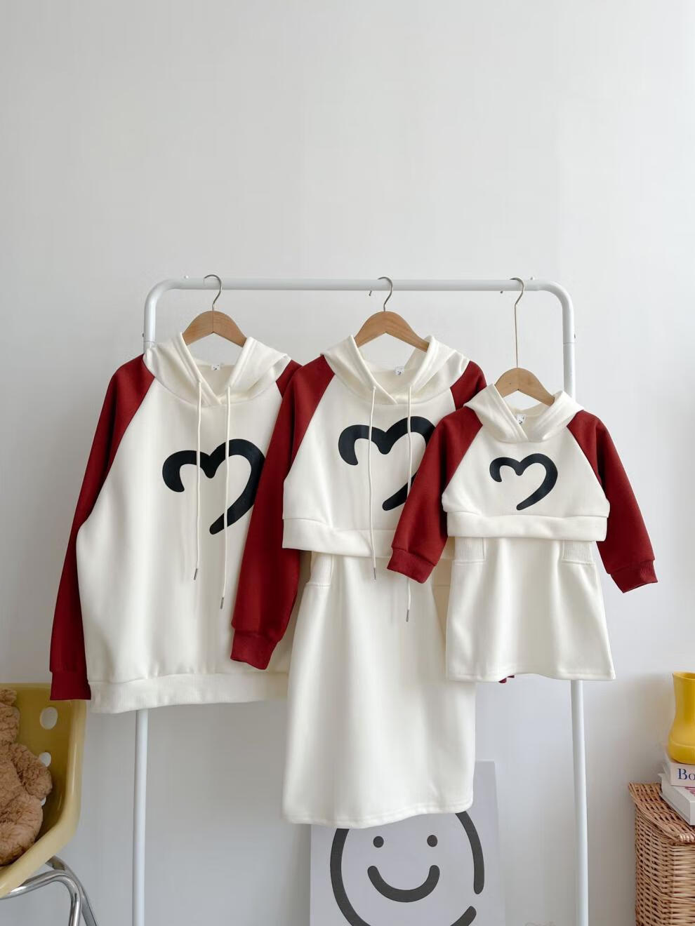 G.duck Internet celebrity new New Year parent-child outfit with hooded raglan sleeves, family of three sweatshirts, autumn and winter mother-daughter small fragrant style dress, milk apricot red (sweatshirt) 175 adult size L