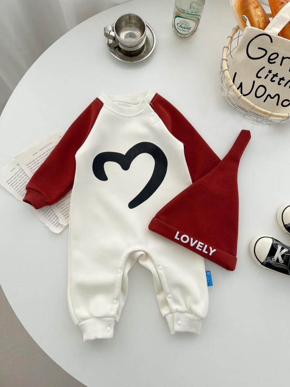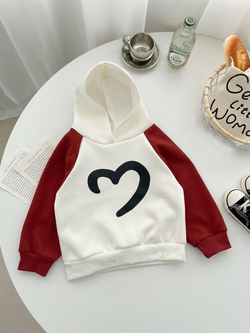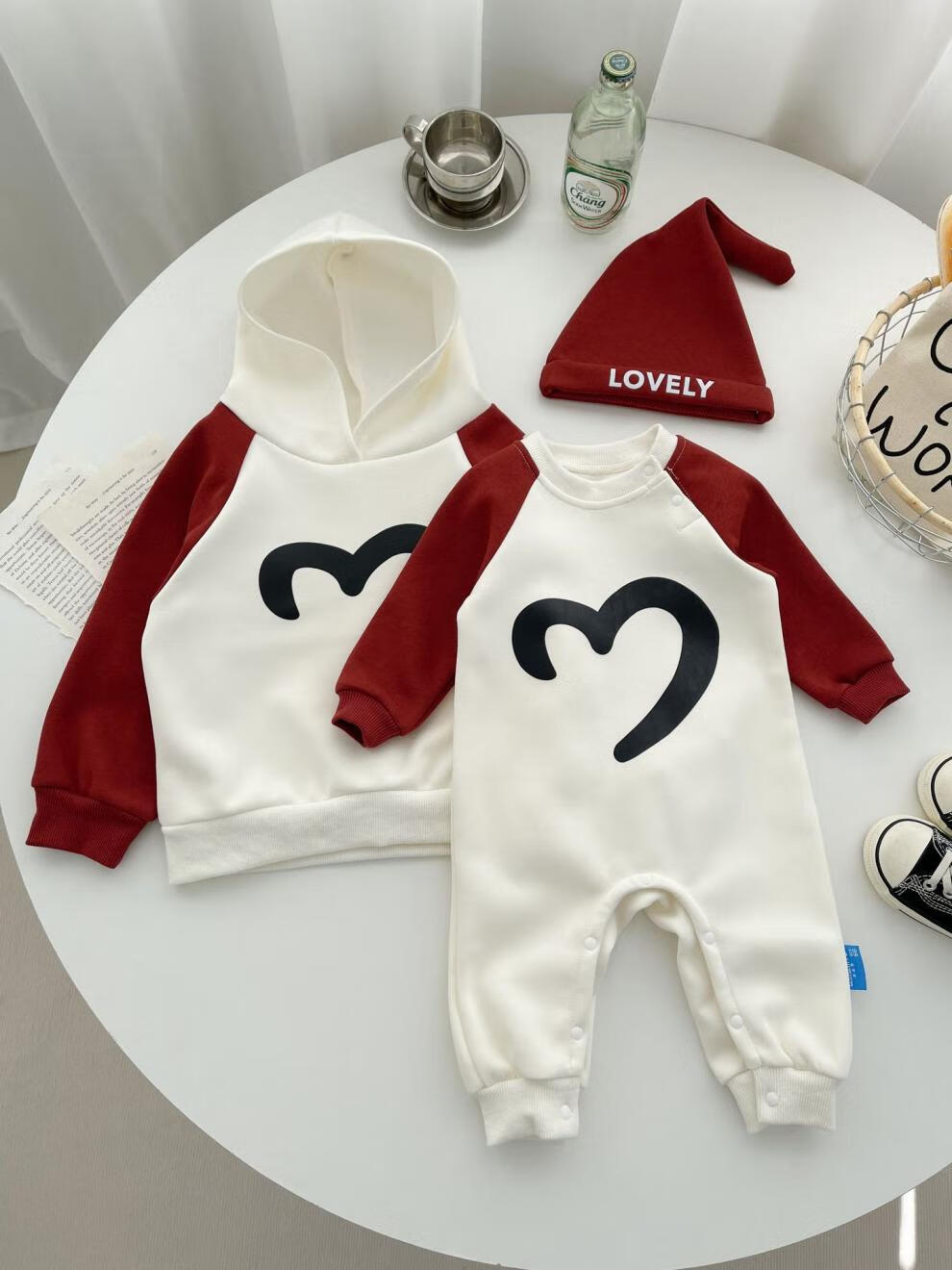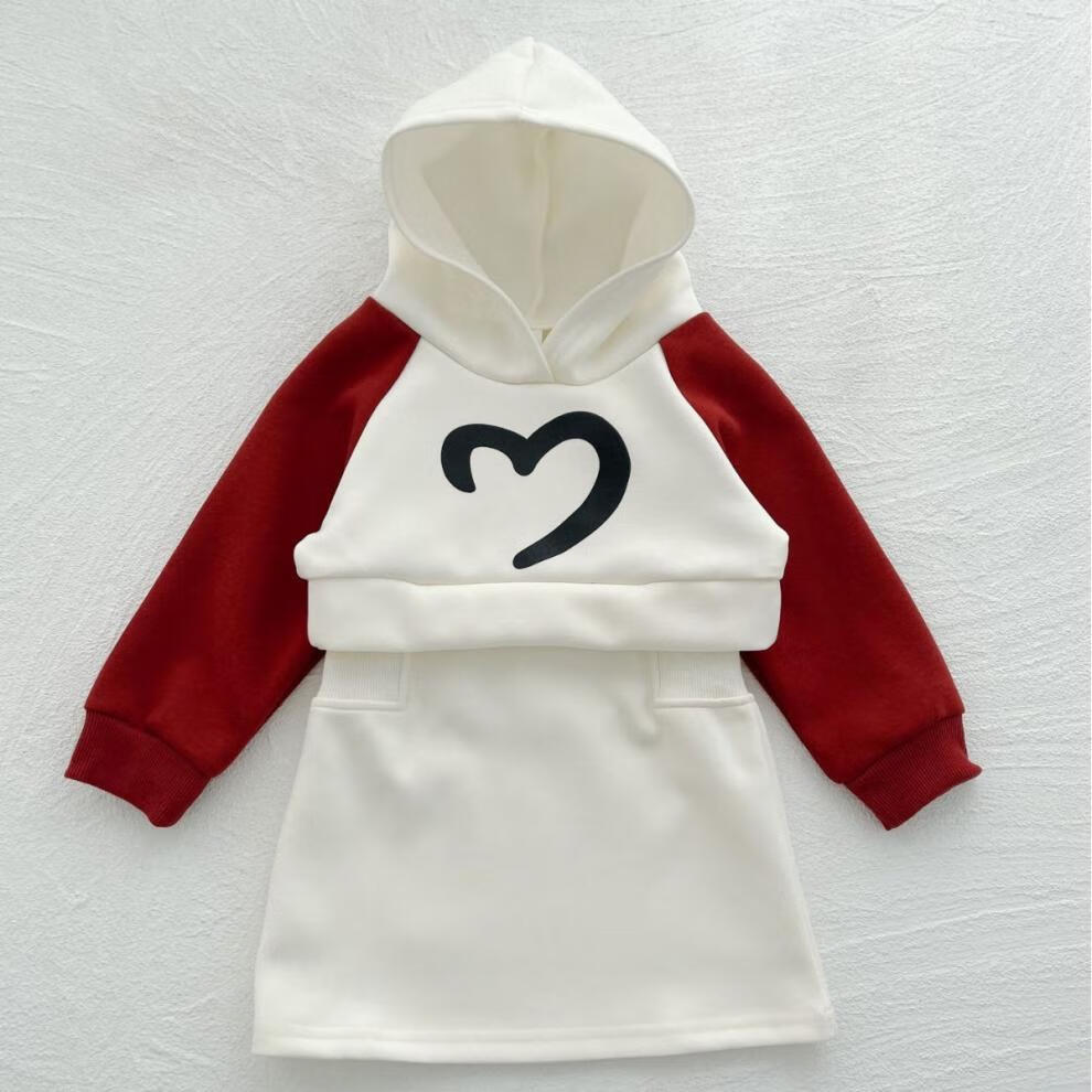 G.duck Internet celebrity new New Year parent-child outfit with hooded raglan sleeves, family of three sweatshirts, autumn and winter mother-daughter small fragrant style dress, milk apricot red (sweatshirt) 175 adult size L