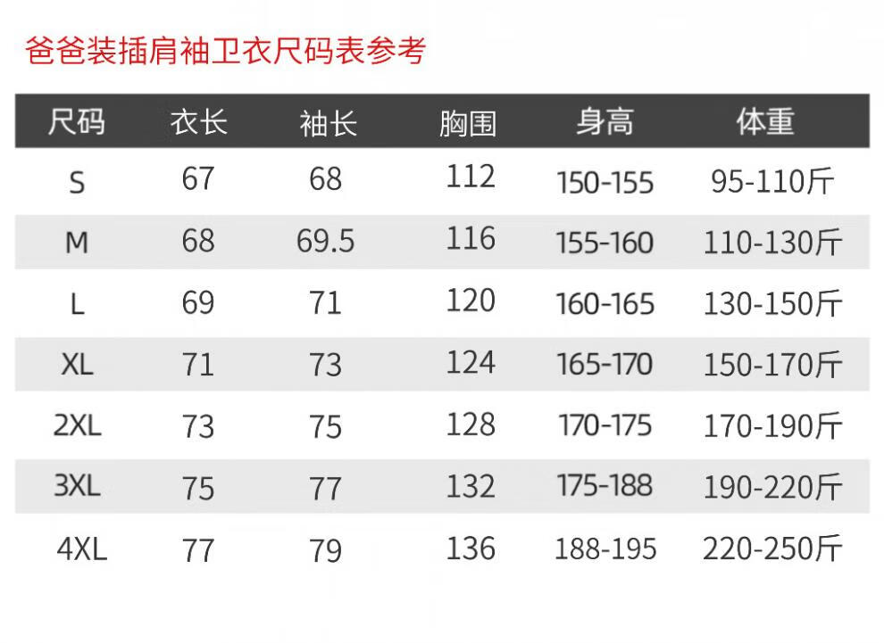 China (cm) 165 / 88-90 170 / 96-98 175 / 108-110 180 / 118-122 185 / 126-130