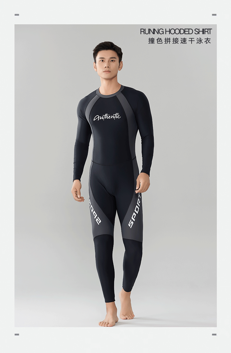 He Jiagong's new swimsuit men's one-piece large size 200Jin Jin is equal to 0.5kg long-sleeved trousers sun protection diving surfing suit swimsuit for men Picture L