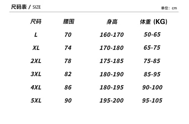 USA(inch) 28-30 30-32 32-34 34-38 38-42