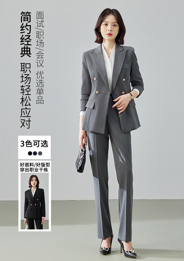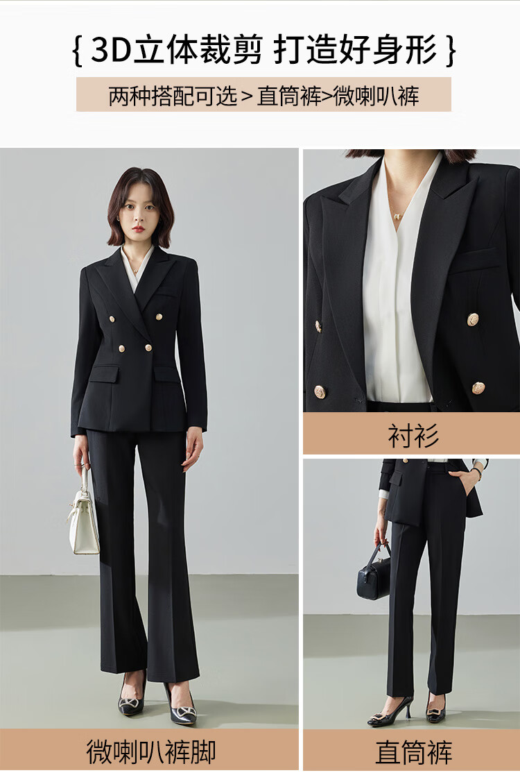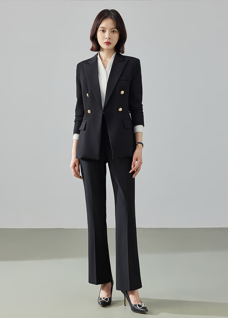 Professional suit suit for women 2025 new autumn style high-end workplace commuting formal temperament long-sleeved suit jacket black jacket + micro-flared pants M (recommended 88-98Jin Jin equals about 0.5 kg)