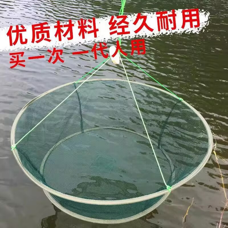 Open folding fishing pot and shrimp pot, round fishing net, lifting net, moving net, platform net, fishing net, lobster net, catching fish and moving kite, upper mouth 1 meter, lower mouth 80, height 40 cm (5 gifts included)