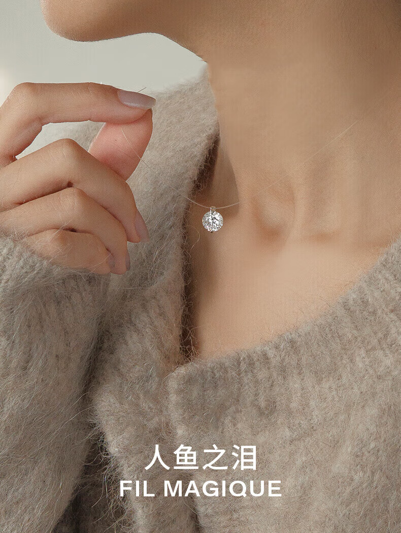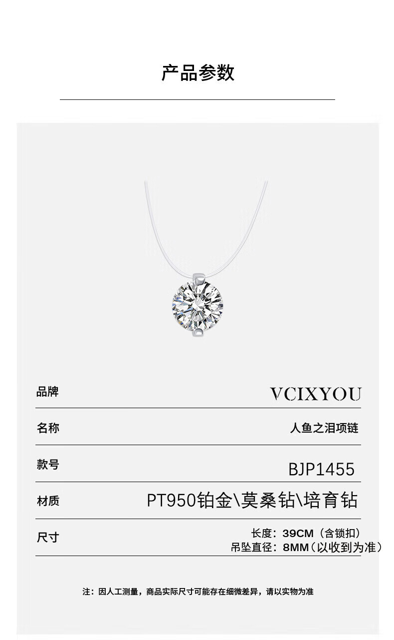 VCIXYOU Official Genuine Platinum Mermaid Tears Cultured Diamond Clavicle Necklace Female Birthday Gift for Girlfriend Best Friend Platinum Mermaid Tears 50 Points Moissanite Diamond Necklace