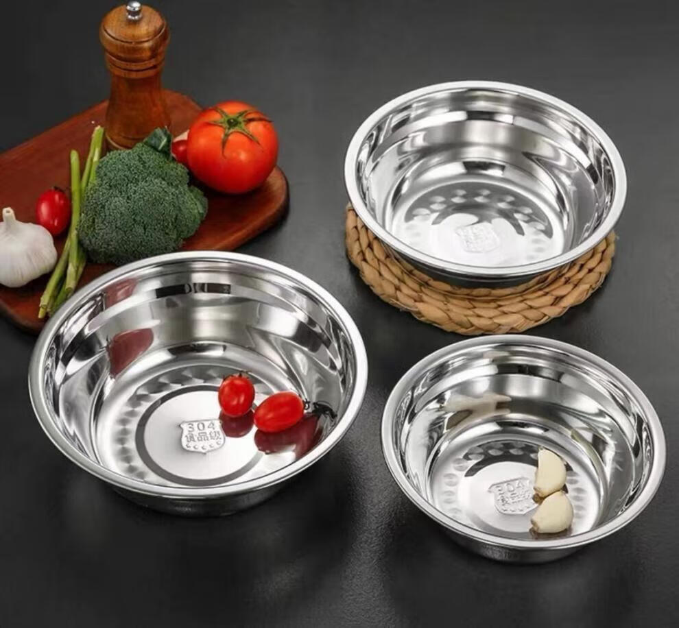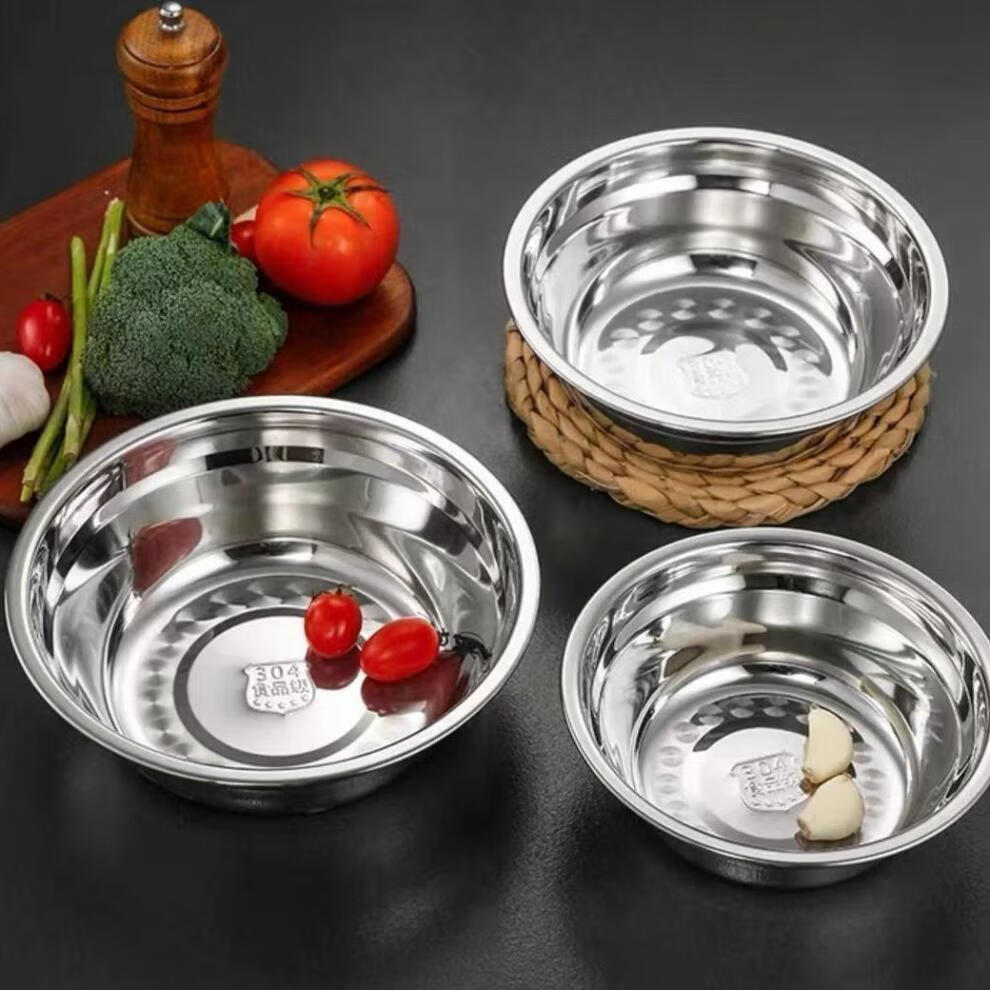 Wenzhi 304 stainless steel basin thickened non-magnetic multi-purpose basin canteen soup bowl household instant noodle bowl rice basin bowl soup basin egg beating basin 14+16+18CM three-piece set