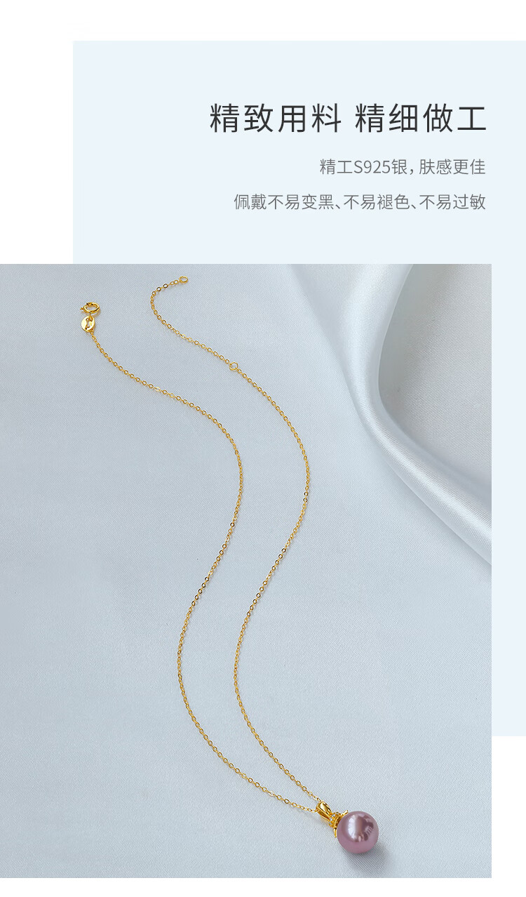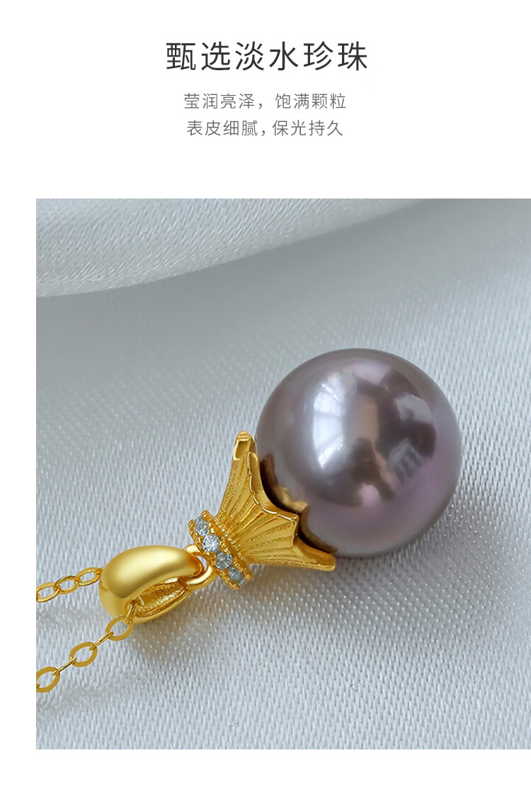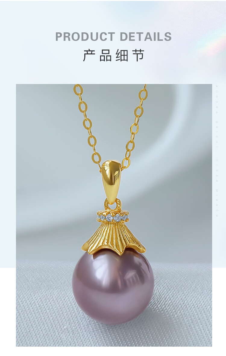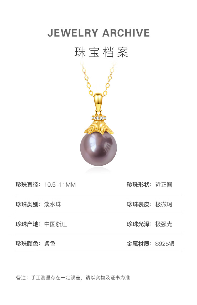 Pearl Queen Purple Freshwater Pearl Pendant S925 Silver Necklace Retro Model Nearly Perfect Round 10.5-11mm