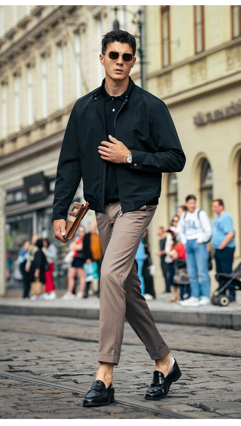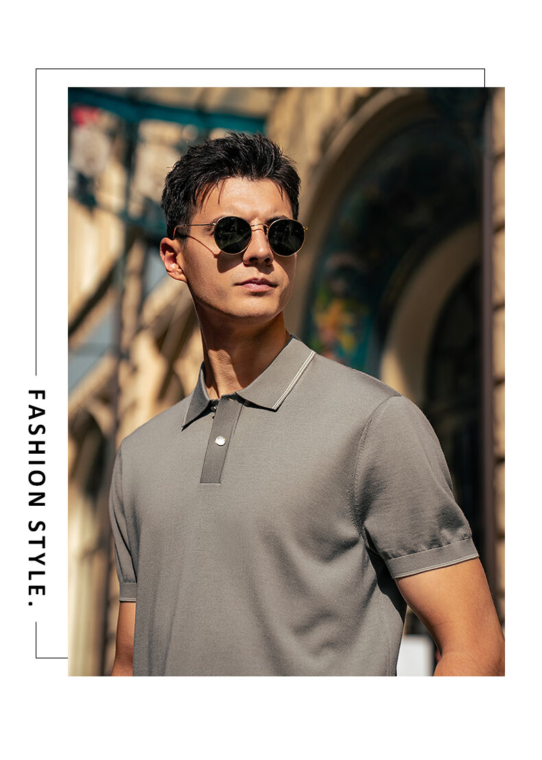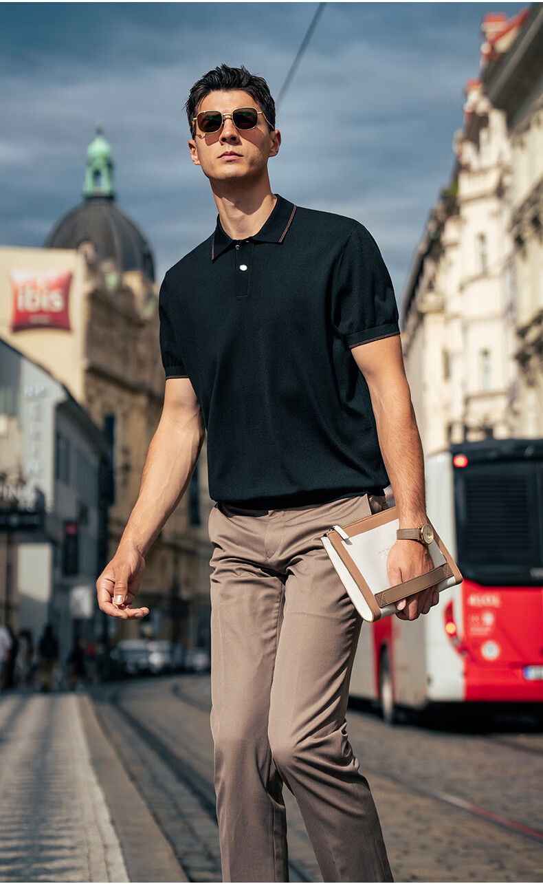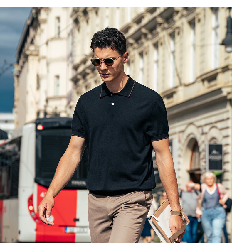 Mr. Bu machine washable lapel cardigan T-shirt 2025 autumn new solid color business sweater short-sleeved bottoming shirt BT16888 piano black 2XL (185)