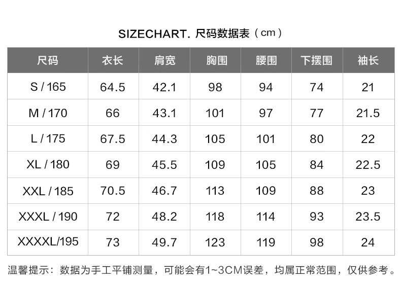 China (cm) 165 / 88-90 170 / 96-98 175 / 108-110 180 / 118-122 185 / 126-130