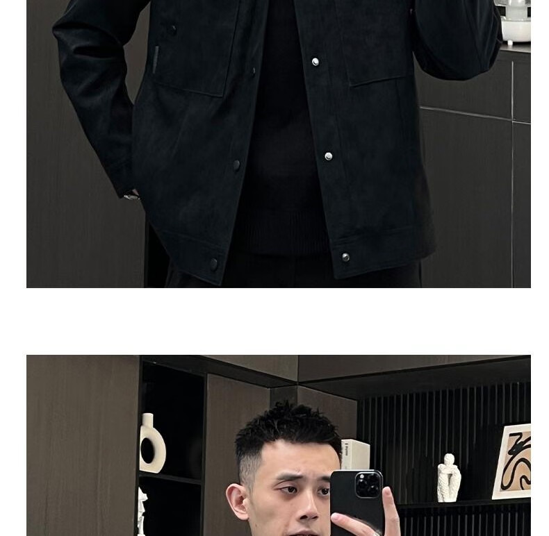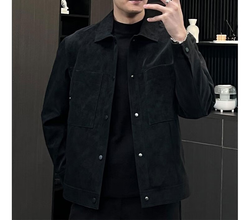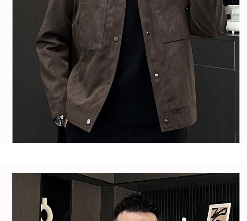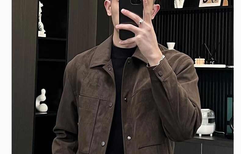 Kuraishi Kazuki trendy lapel handsome soft waxy jacket men's autumn and winter fashionable light and versatile motorcycle work jacket coffee color XL