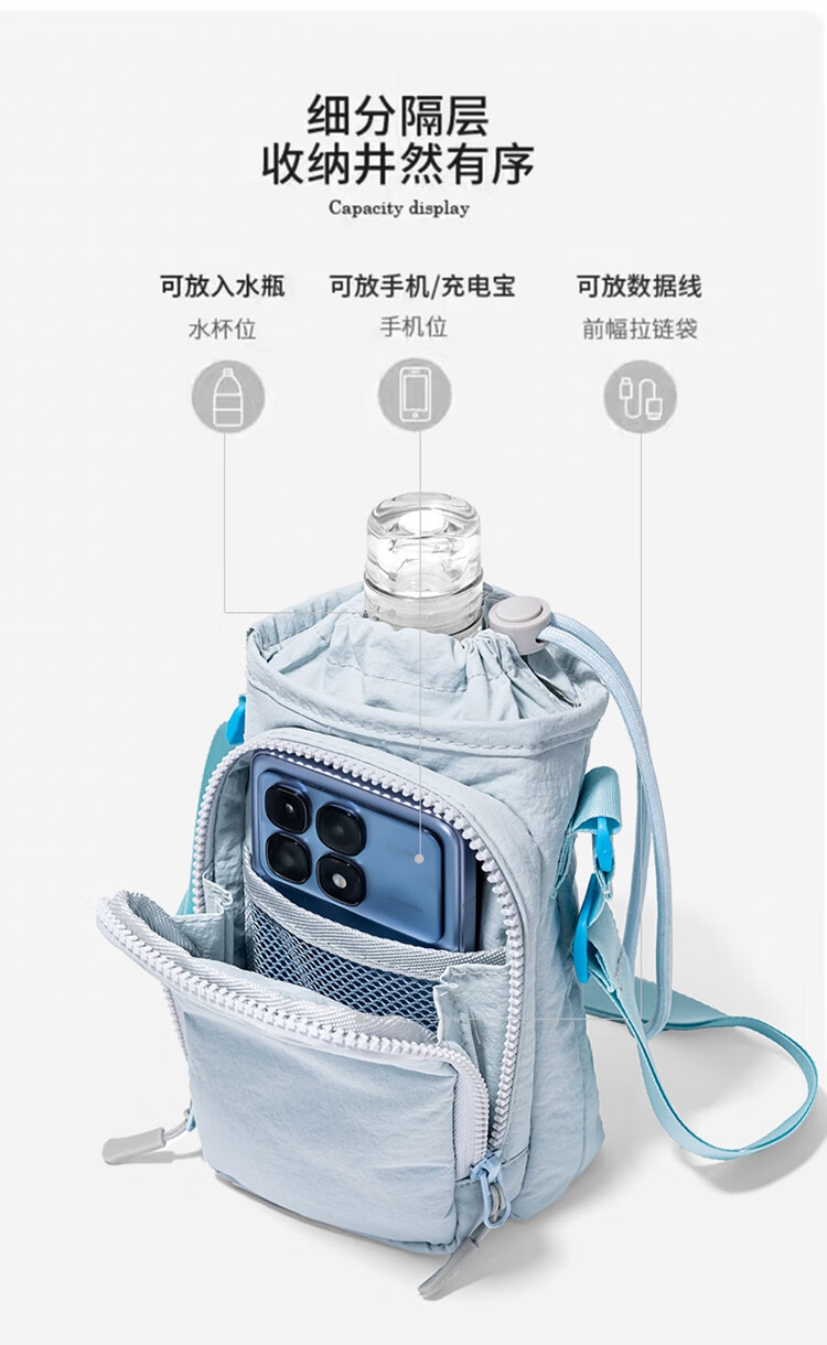 Light blue mobile phone bag, male and female student water bottle bag, outdoor sports portable crossbody bag, travel water cup, shoulder bag, small bag, light blue
