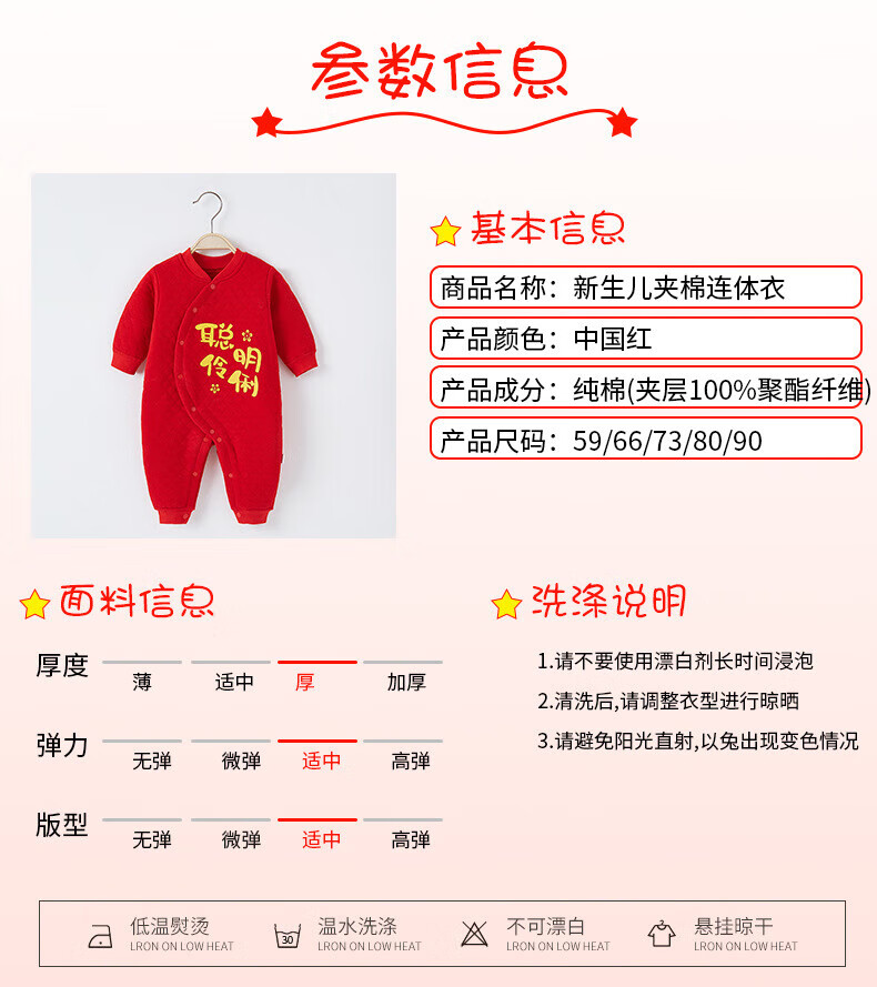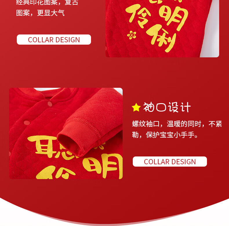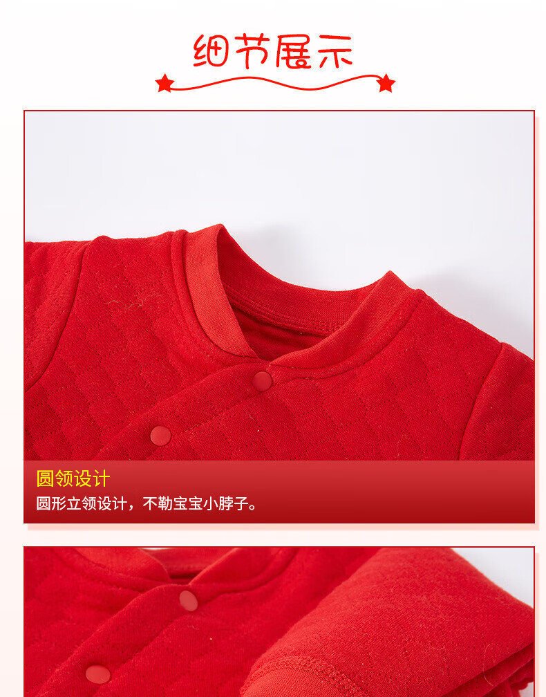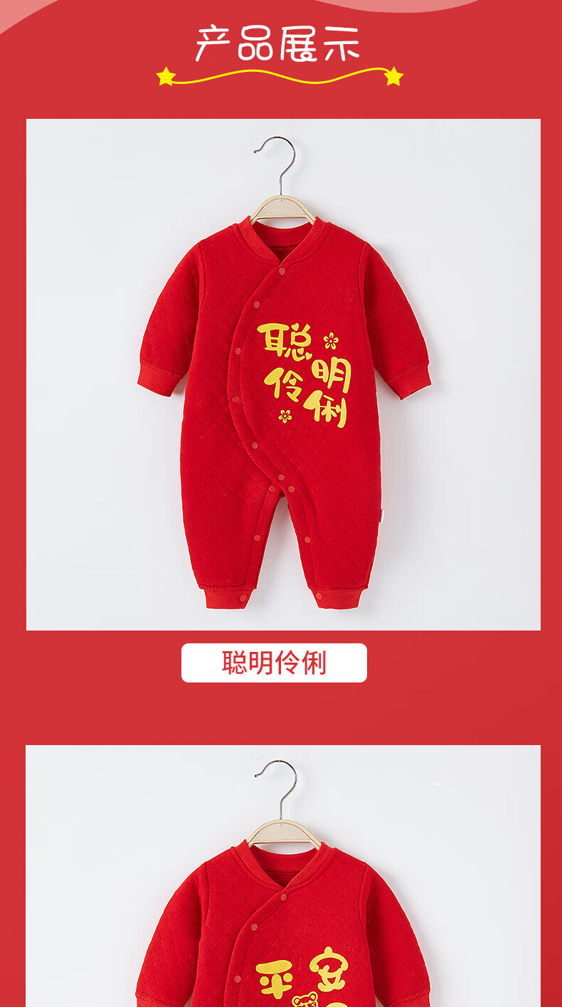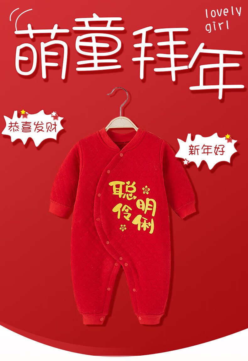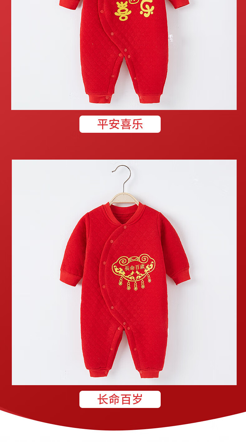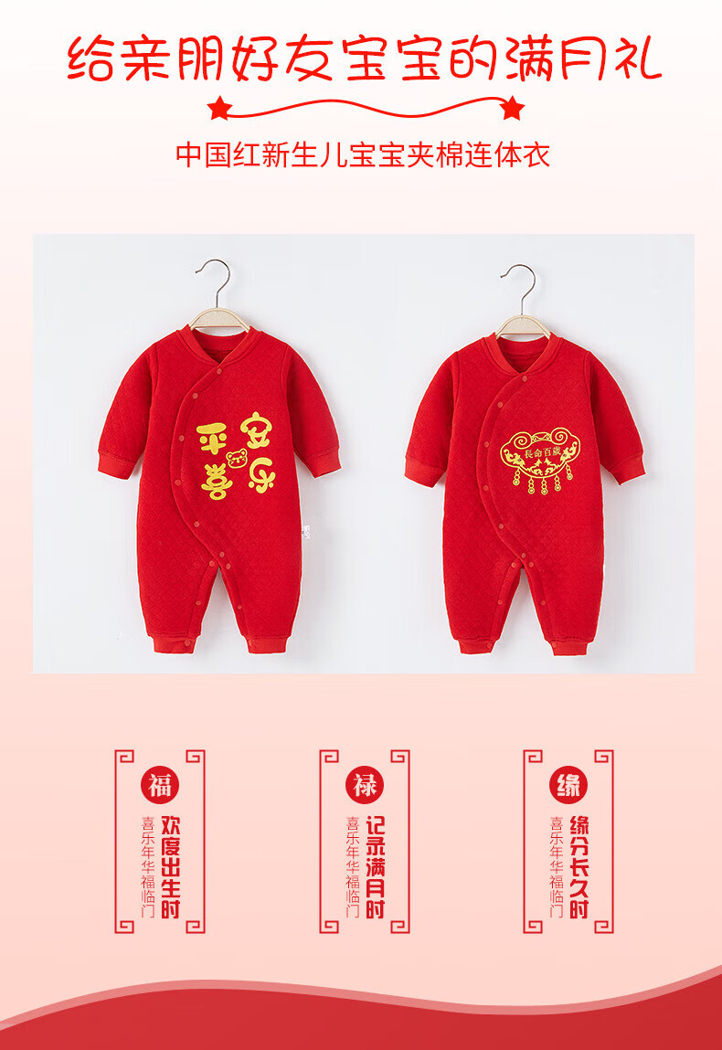 Baby jumpsuit autumn and winter quilted warm red New Year's full moon suit newborn male and female baby's week dress Jixiang Ruyi 59cm