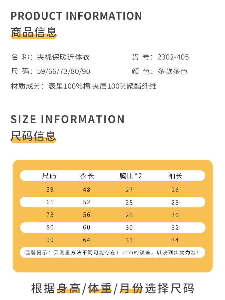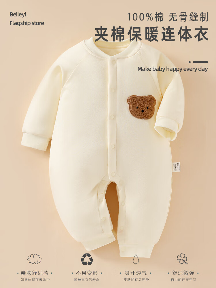 Baby One-piece Clothespin Cotton 180g Warm Autumn and Winter Clothes Baby Harness Winter Cotton Clothes Children's Thickened Clothes Wish You Come True 5983 180g Cotton 66cm Recommended 3-6 months