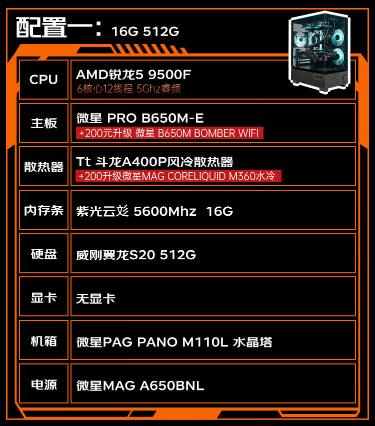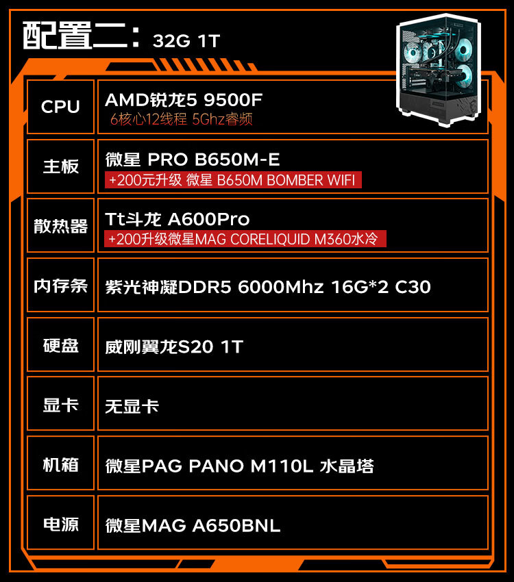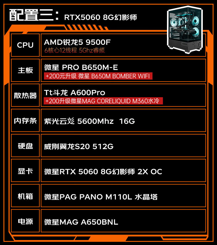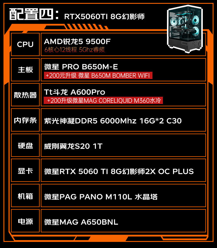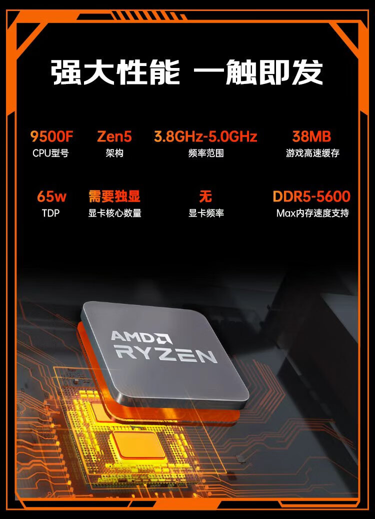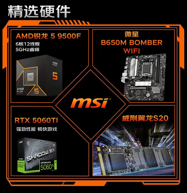 MSI AMD Ryzen 5 9500F/RTX5060/RX5060TI Mainstream gaming machine High-performance e-sports assembly computer Configuration 2 9500F/32G+IT