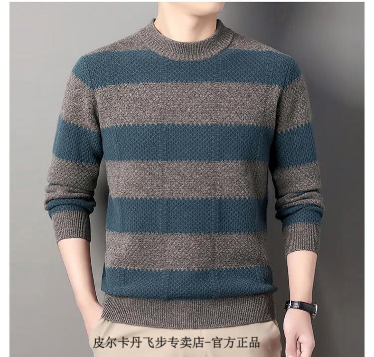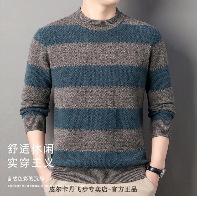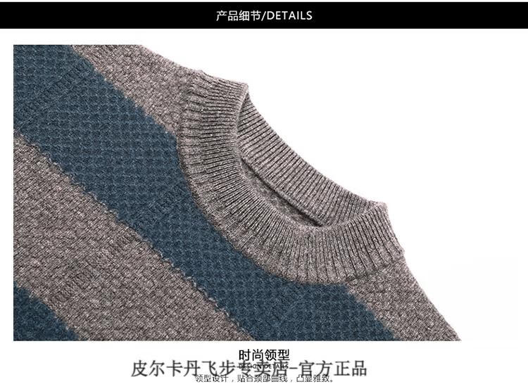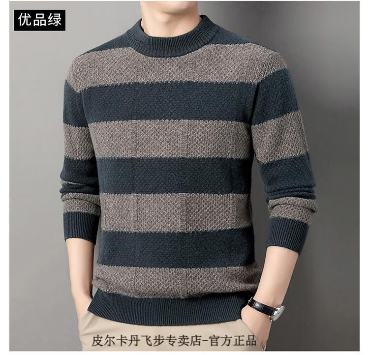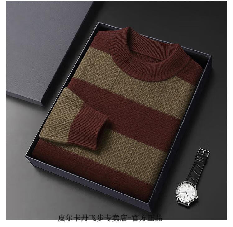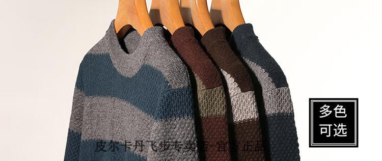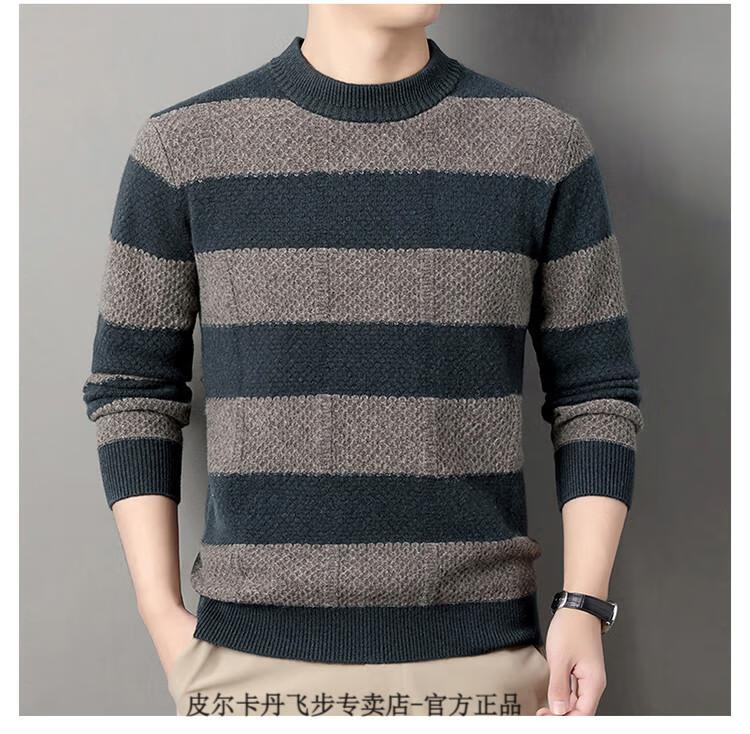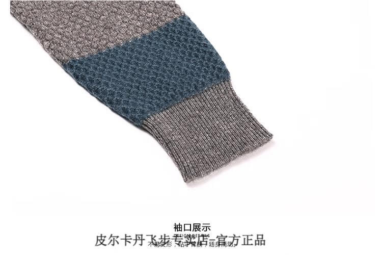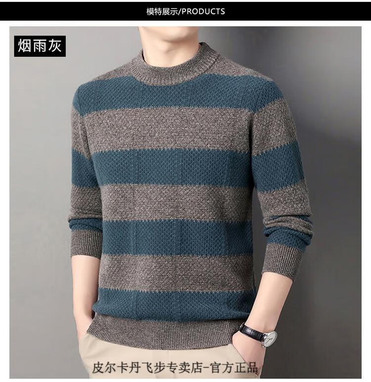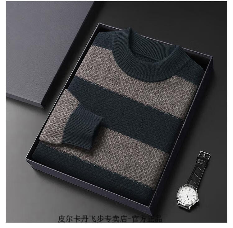 Pierre Cardin brand 100% pure cashmere men's high-end cashmere sweater winter warm round neck pullover color block sweater base layer smoke gray brand gift box packaging L (170) recommended weight 120-140Jin Jin equals 0.5 kg