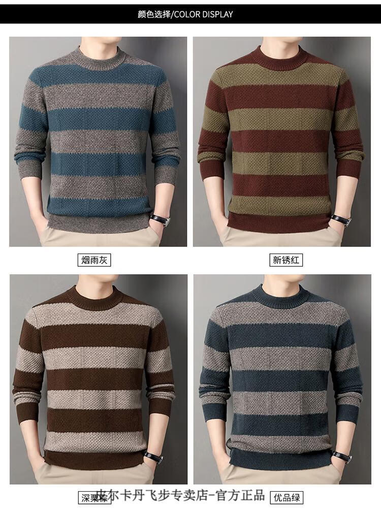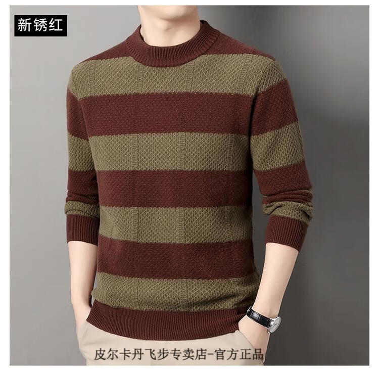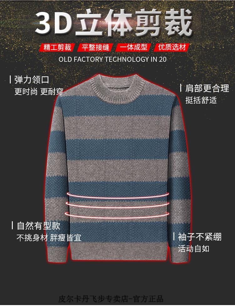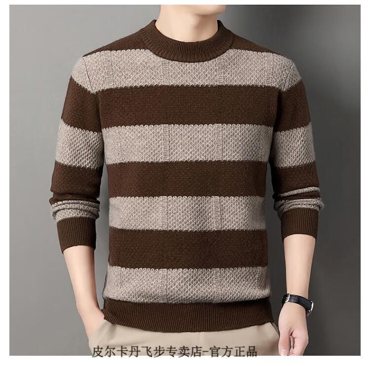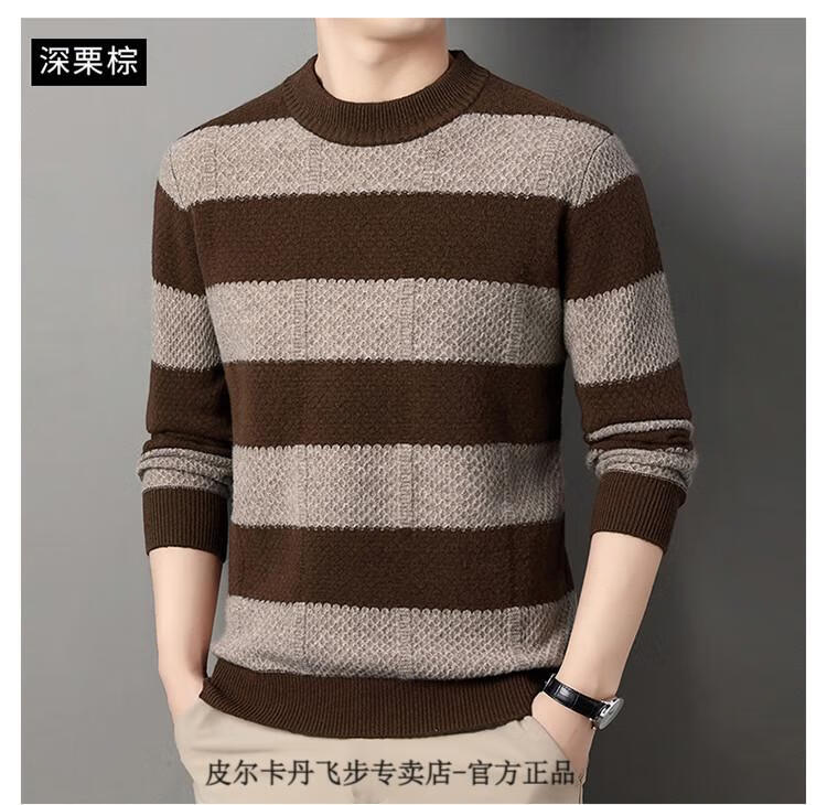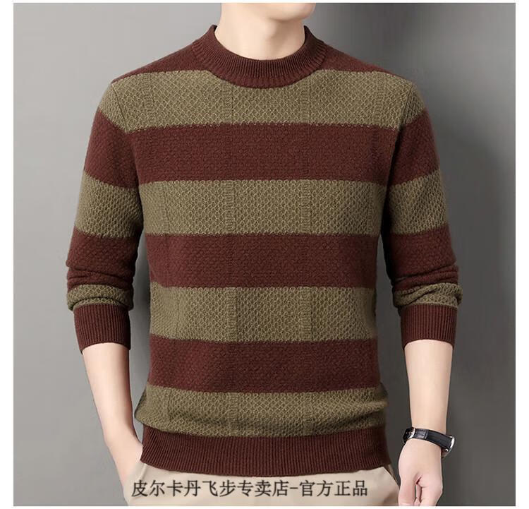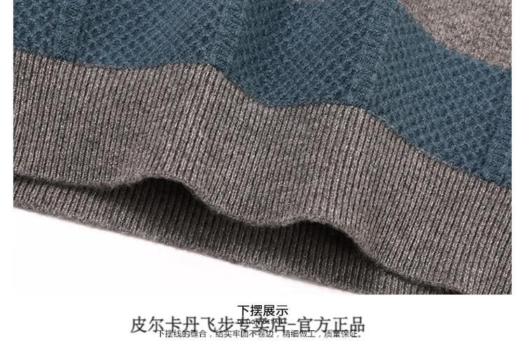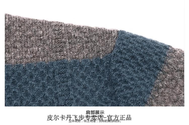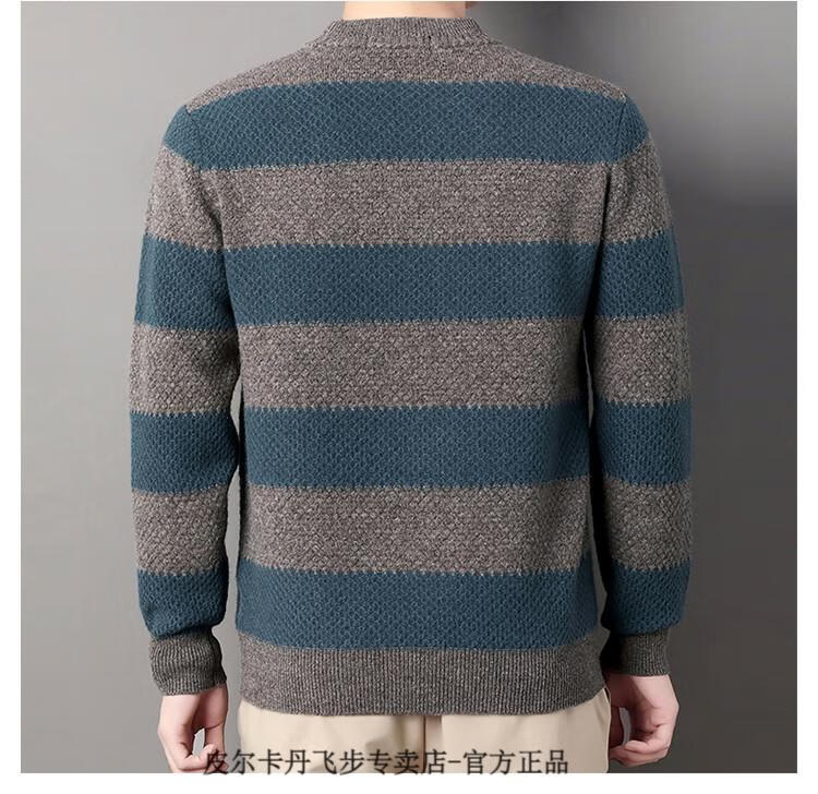 Pierre Cardin brand 100% pure cashmere men's high-end cashmere sweater winter warm round neck pullover color block sweater base layer smoke gray brand gift box packaging L (170) recommended weight 120-140Jin Jin equals 0.5 kg