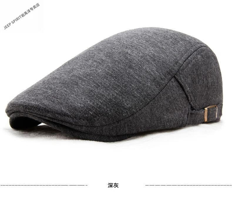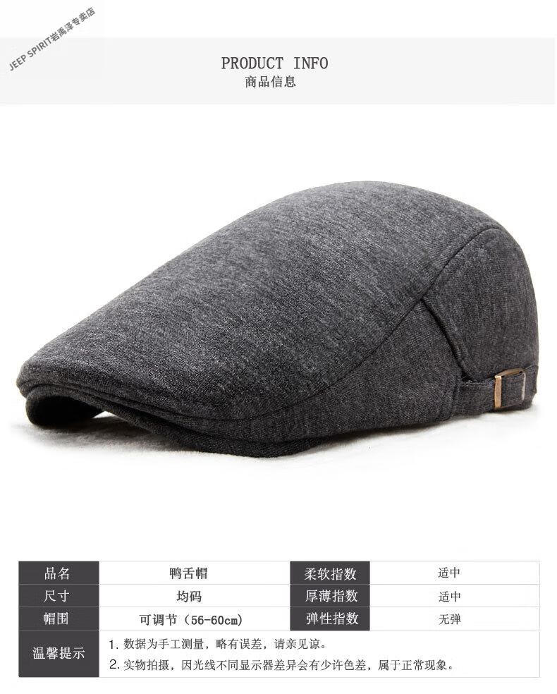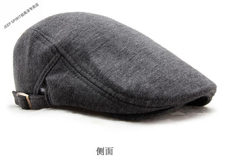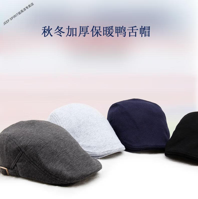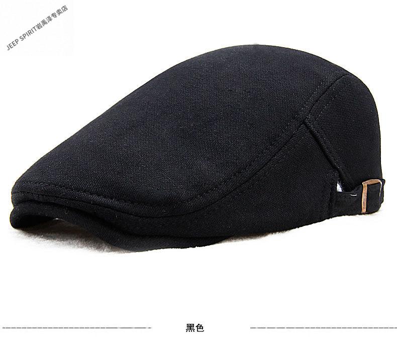 JEEP Autumn and Winter Hat Men's Cotton Peaked Hat Korean Version Light Board Solid Color Painter's Beret Women's Black One Size Adjustable