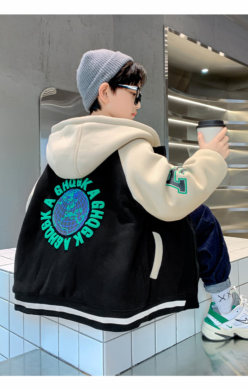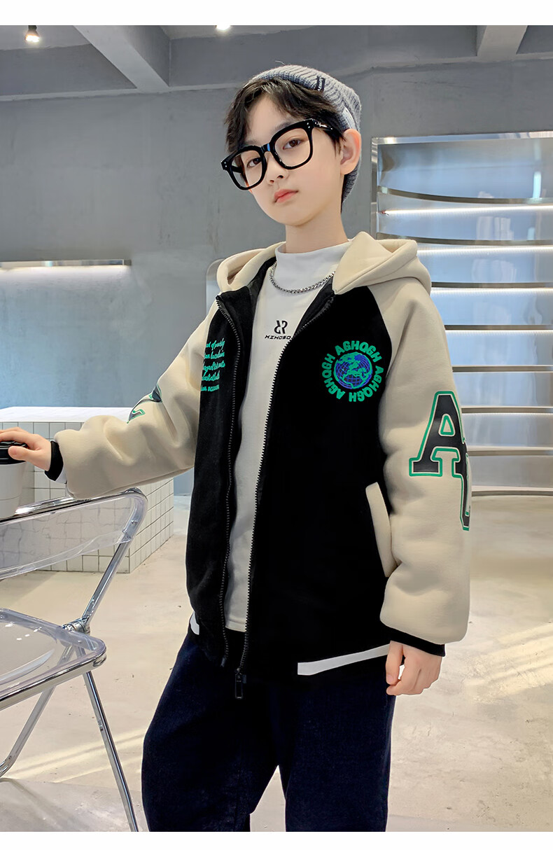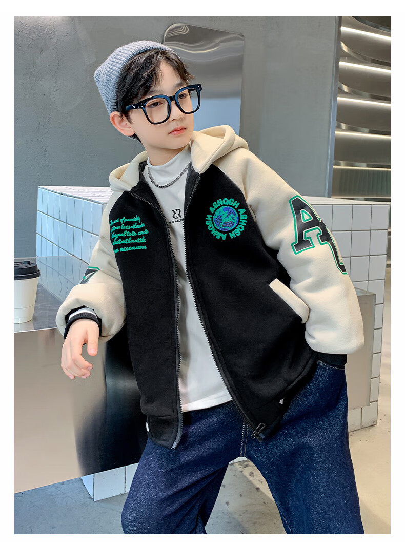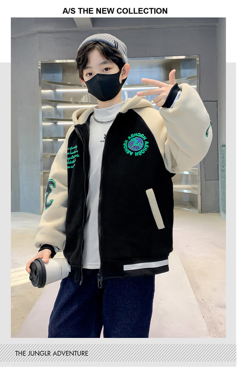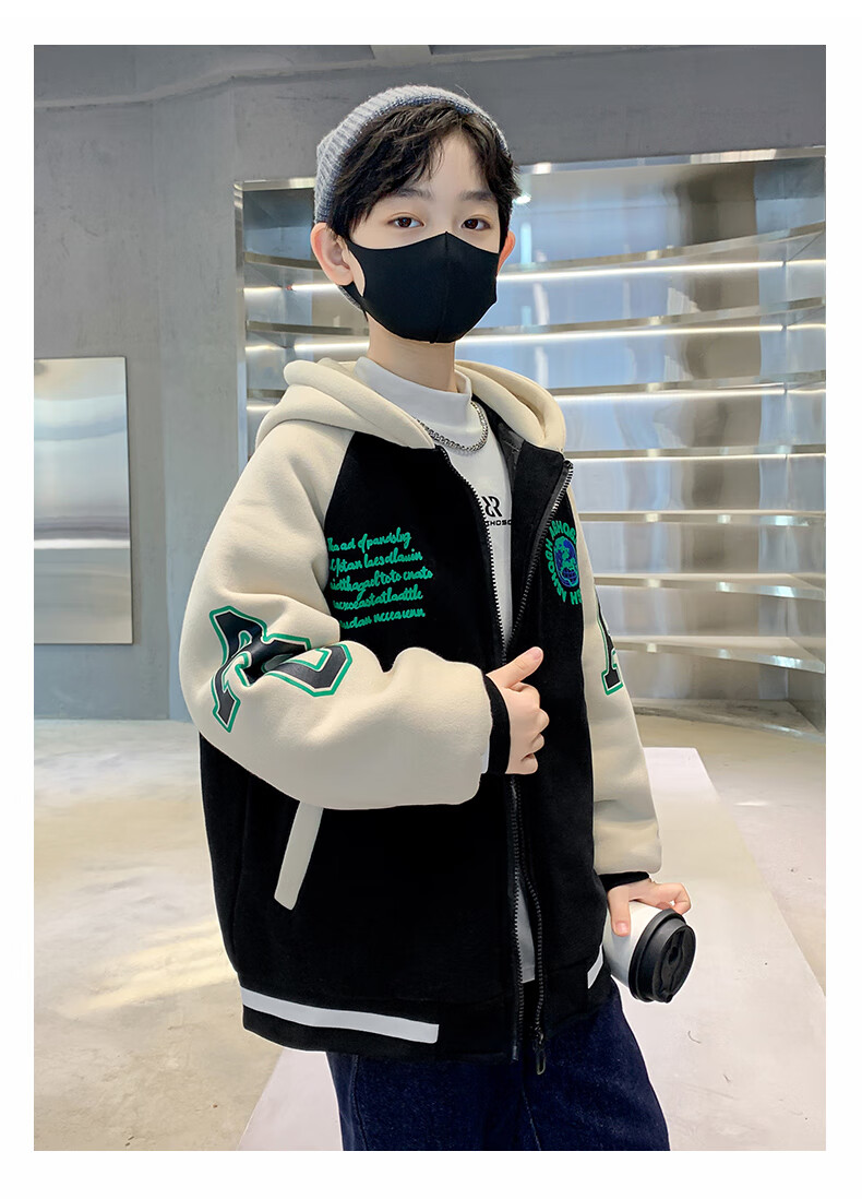 Children's clothing, boys' autumn jackets, spring and autumn models, 2025 new style, medium and large children's street boys' autumn style clothes trend WX-Xin136 black plus velvet style 160 (recommended within 155 cm)