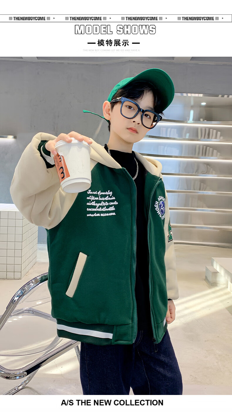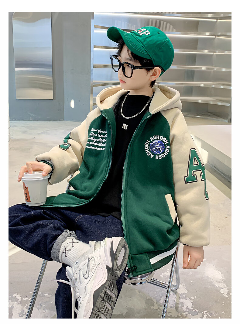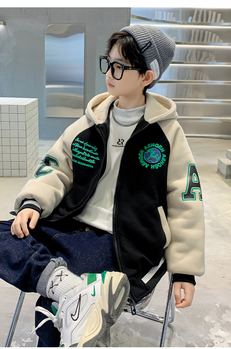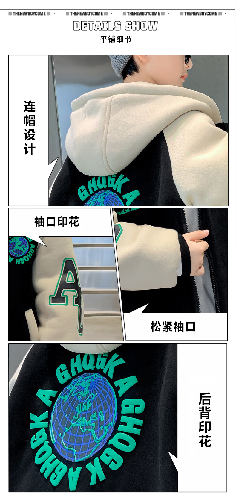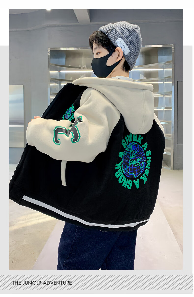 Children's clothing, boys' autumn jackets, spring and autumn models, 2025 new style, medium and large children's street boys' autumn style clothes trend WX-Xin136 black plus velvet style 160 (recommended within 155 cm)