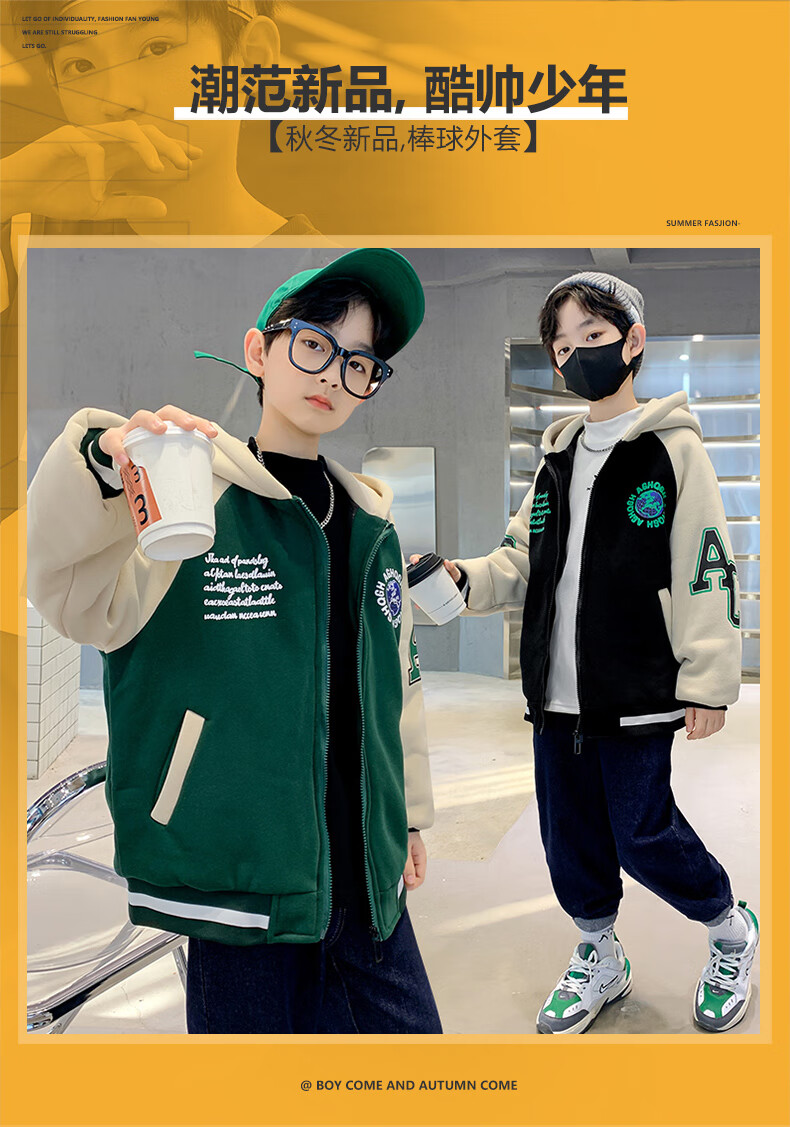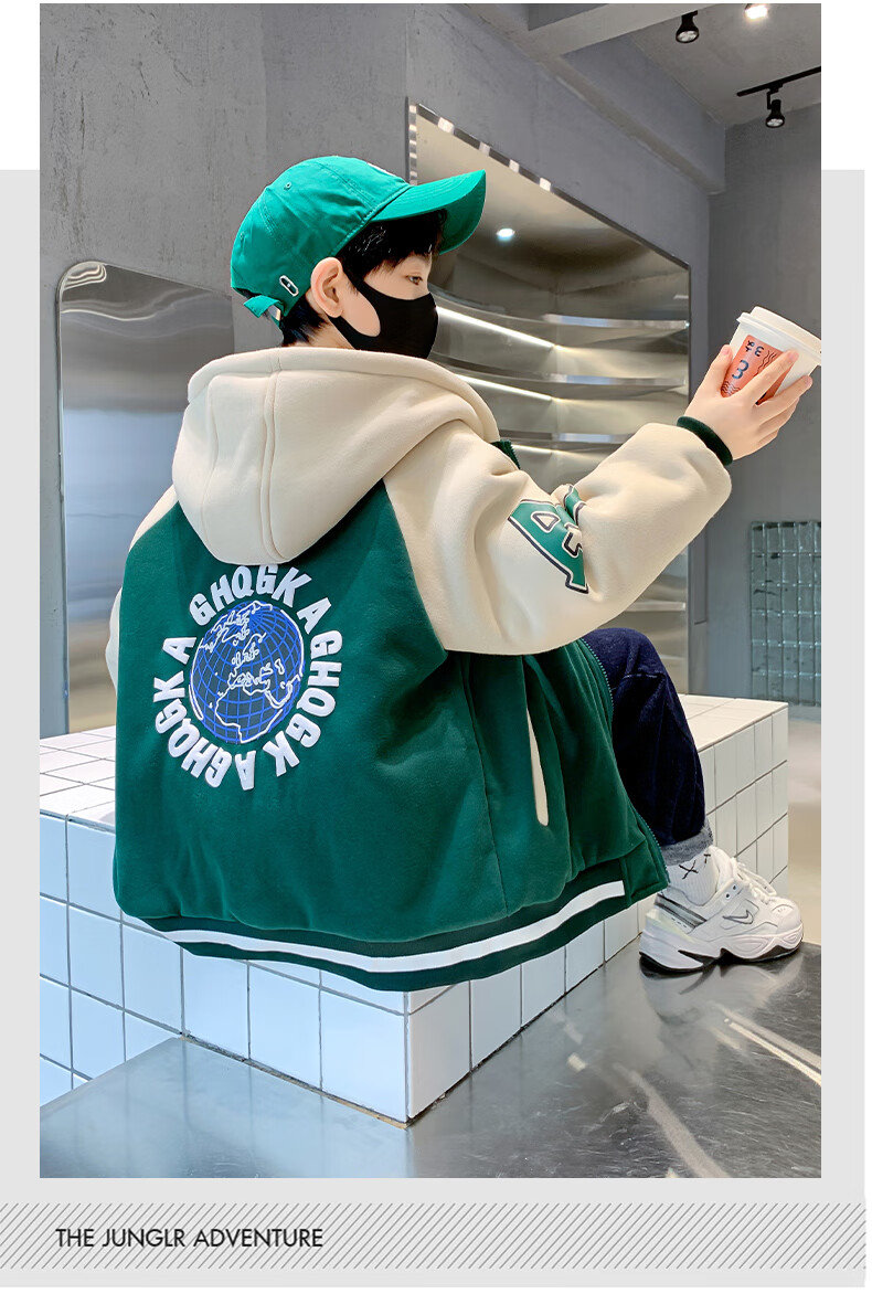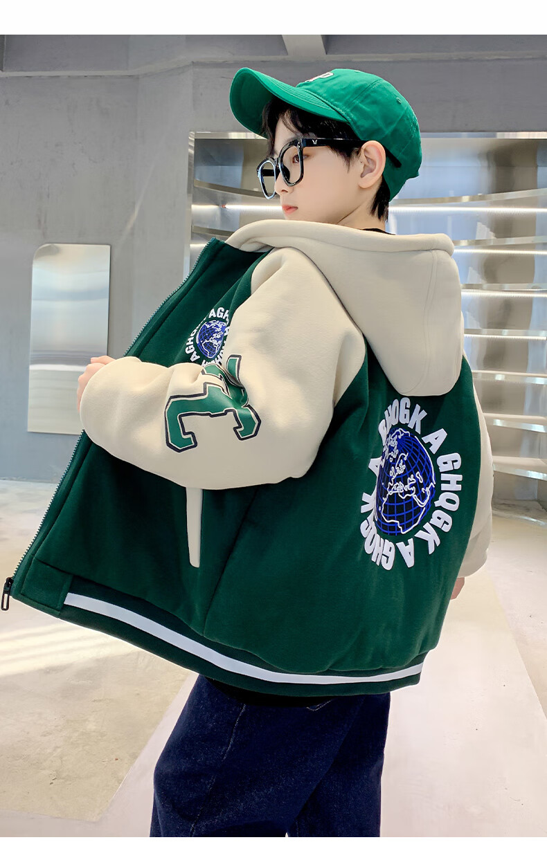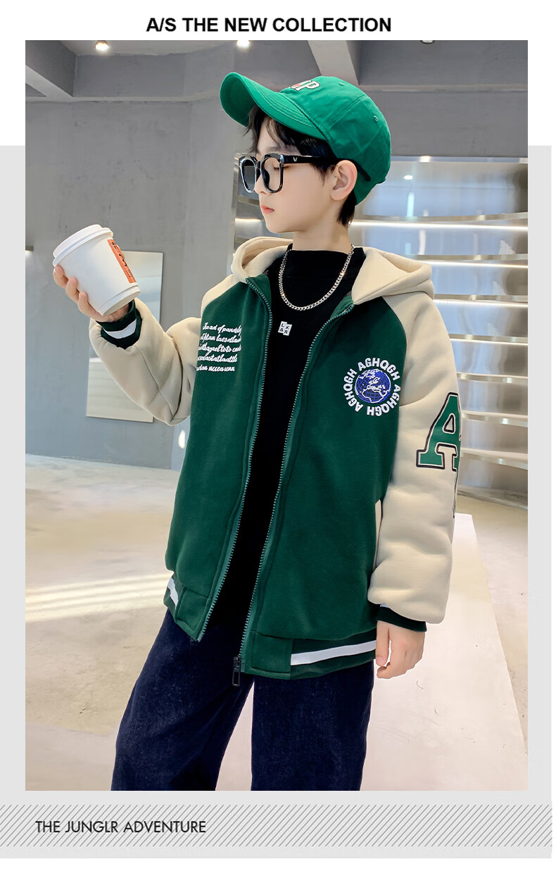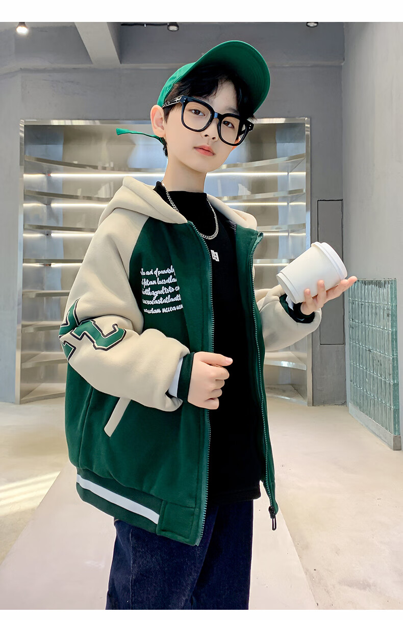 Children's clothing, boys' autumn jackets, spring and autumn models, 2025 new style, medium and large children's street boys' autumn style clothes trend WX-Xin136 black plus velvet style 160 (recommended within 155 cm)