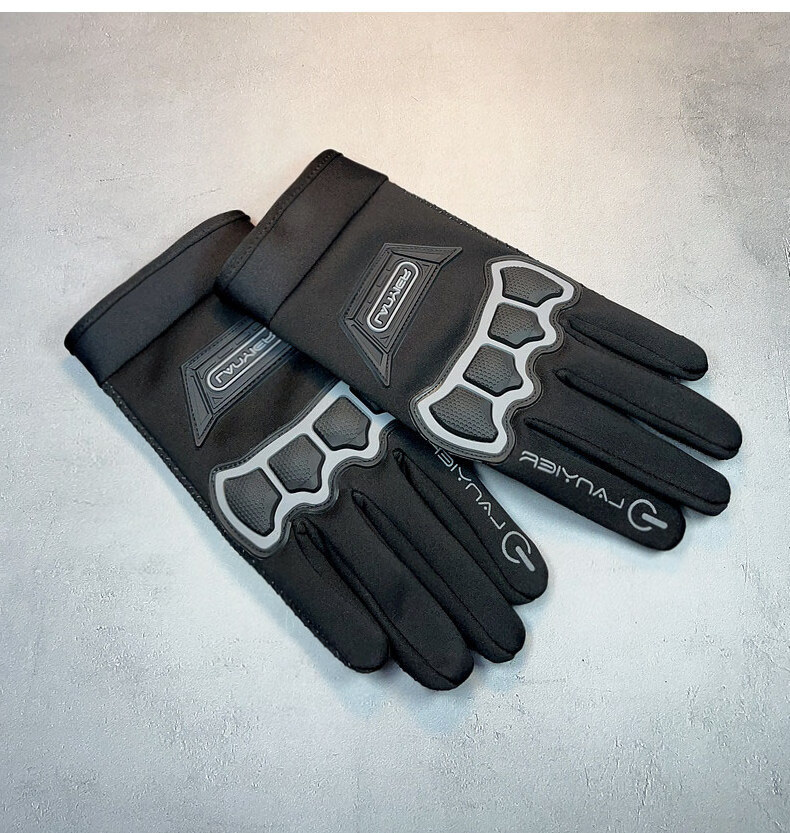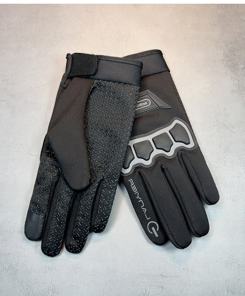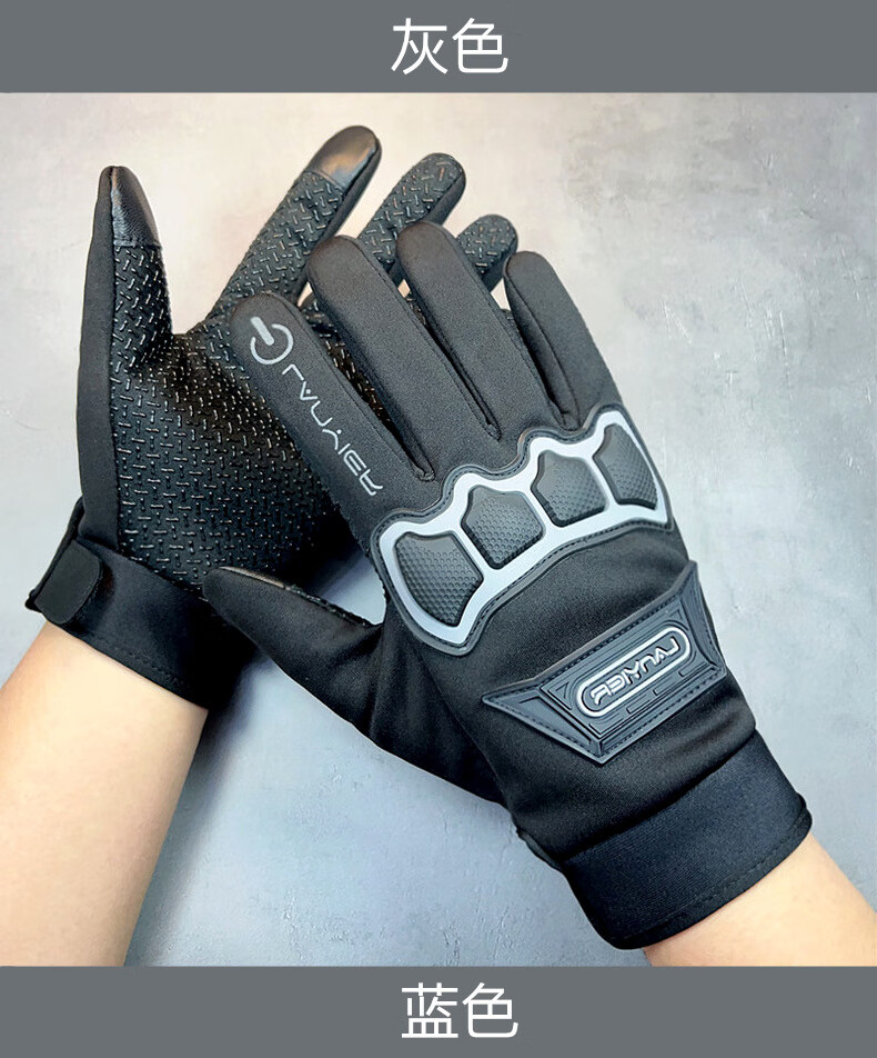 Haoguan (HAOGUAN) outdoor cycling winter gloves for men, warm and velvet, waterproof, windproof, touch screen, anti-fall, sports, non-slip, thickened motorcycle, gray black, one size fits all