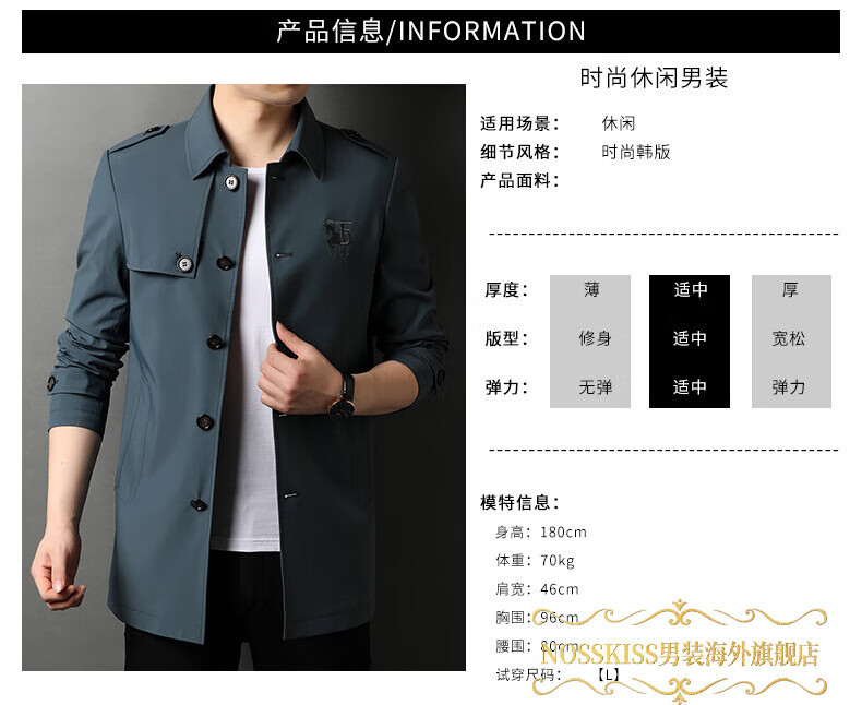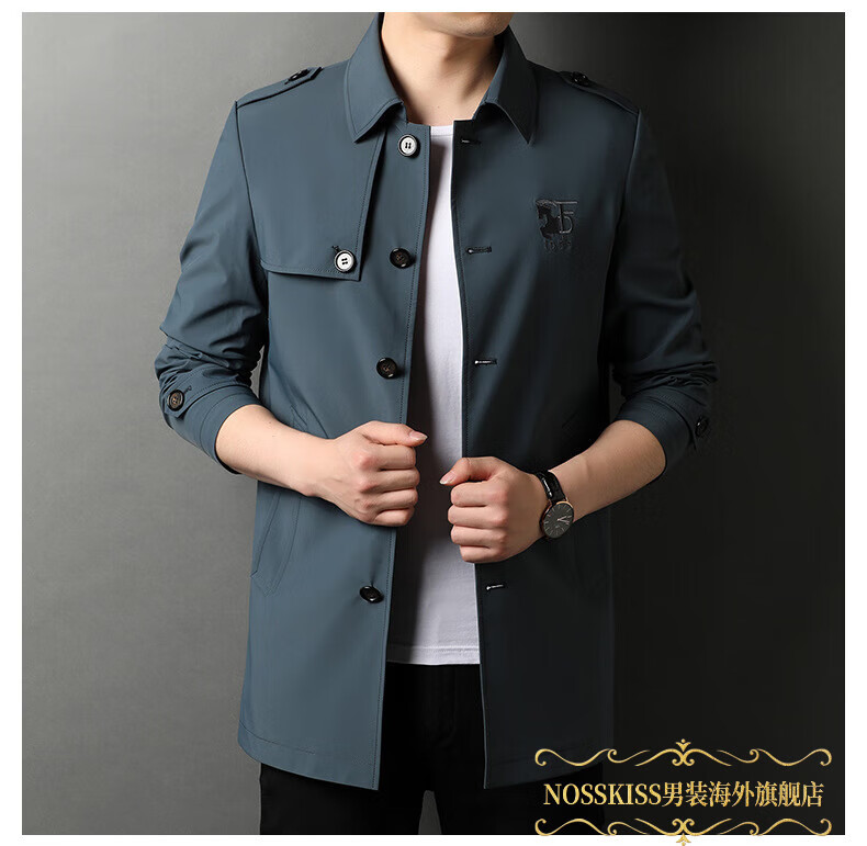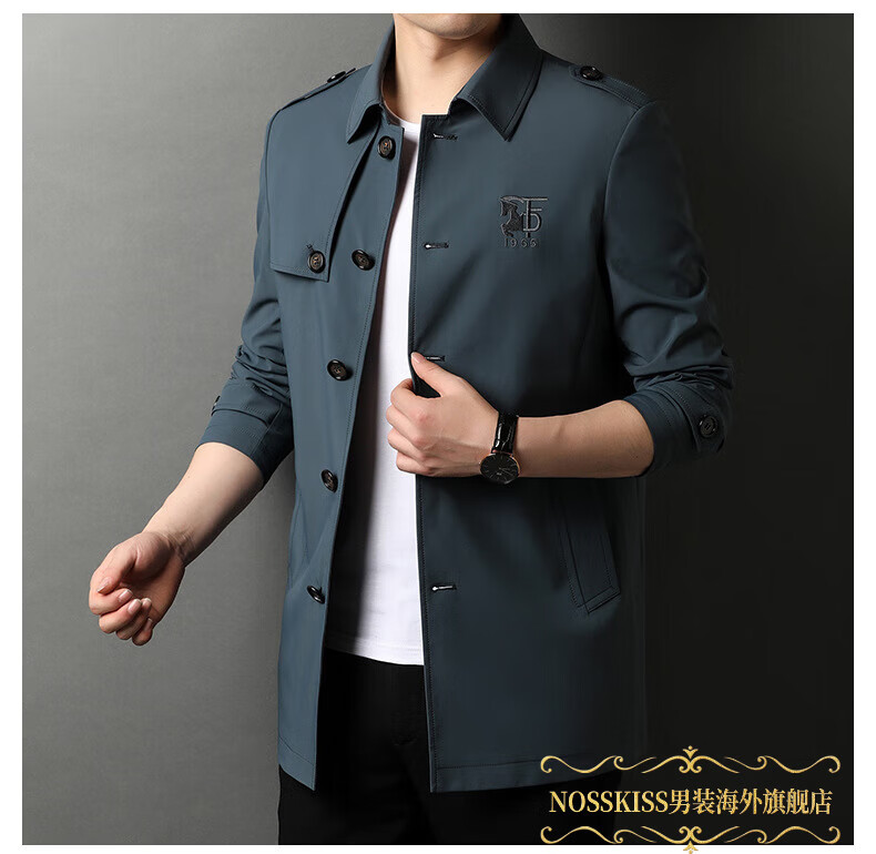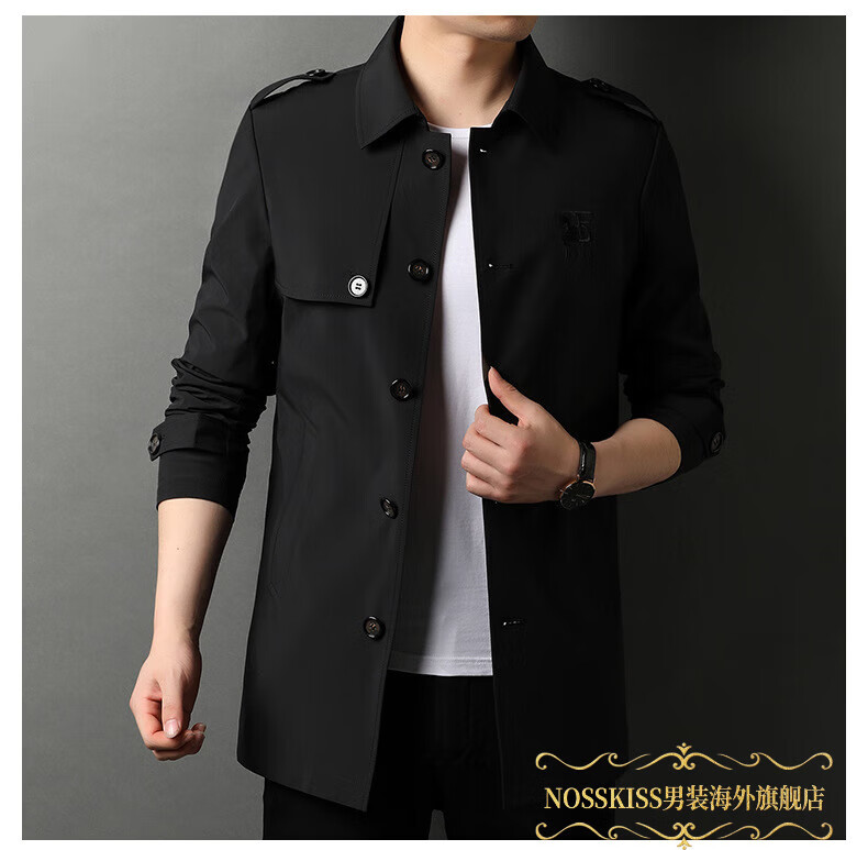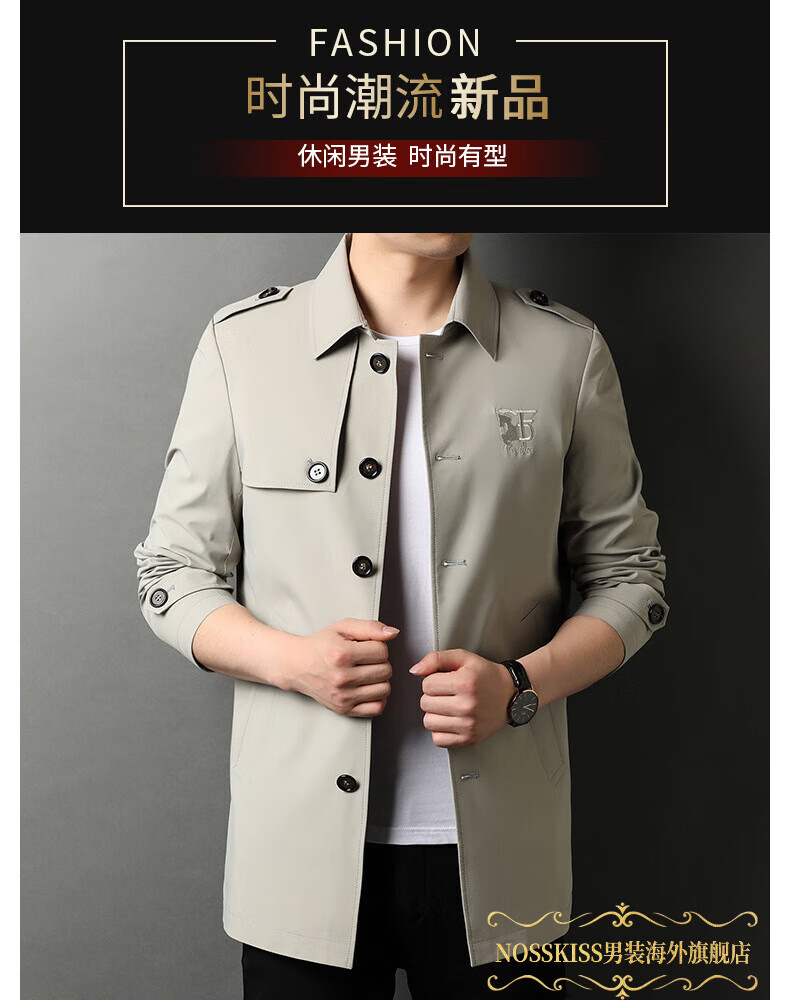 NOSSKISS international high-end brand windbreaker men's 2025 spring and autumn medium-length thin single-breasted casual jacket for young and middle-aged men Khaki one size 180 suitable for 140-160 Jin Jin equals 0.5 kg