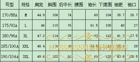 China(cm) 72-76 76-81 81-87 87-93 93-98