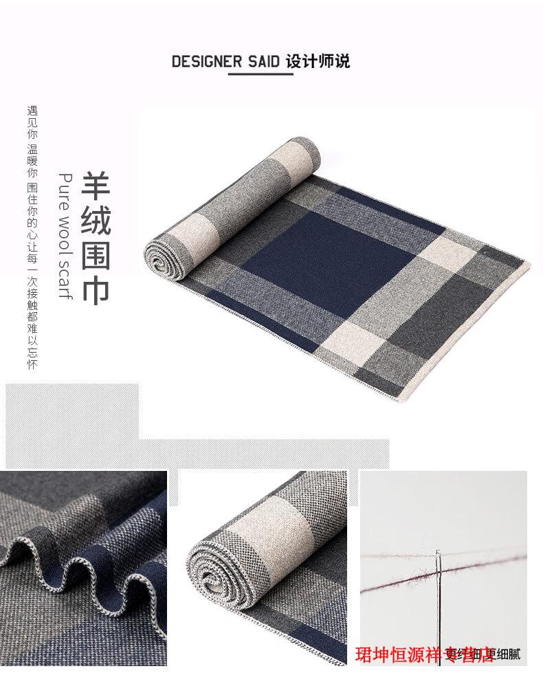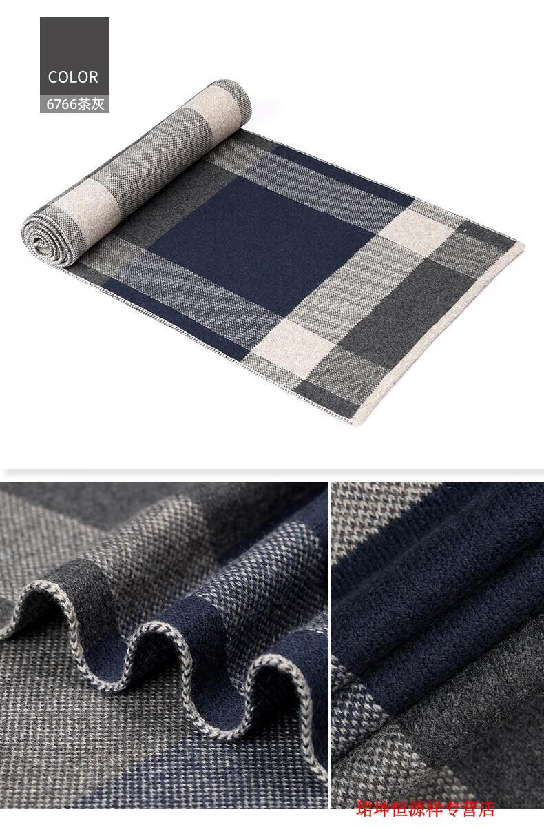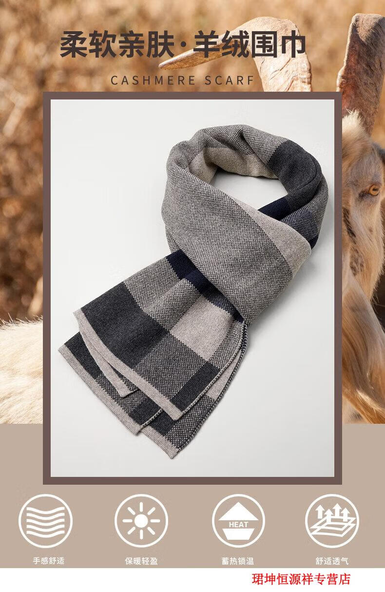 恒源祥围巾男冬季韩版百搭加厚保暖山羊绒围脖学生时尚防风防寒礼物 6766茶灰