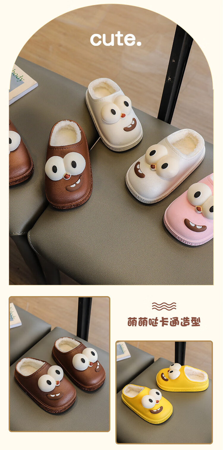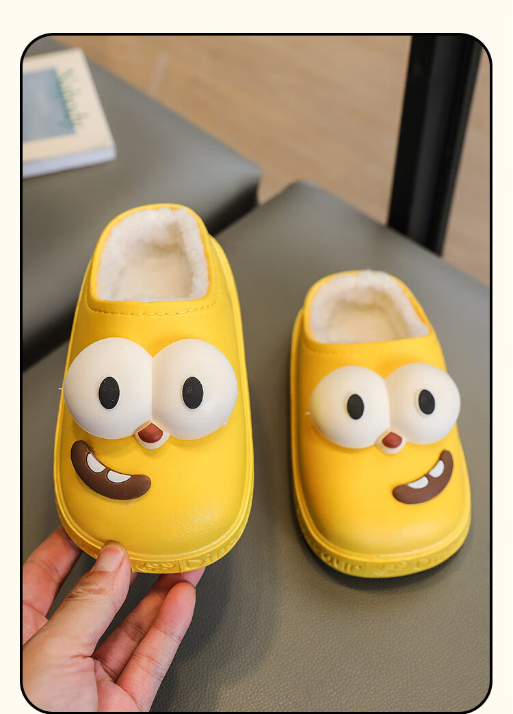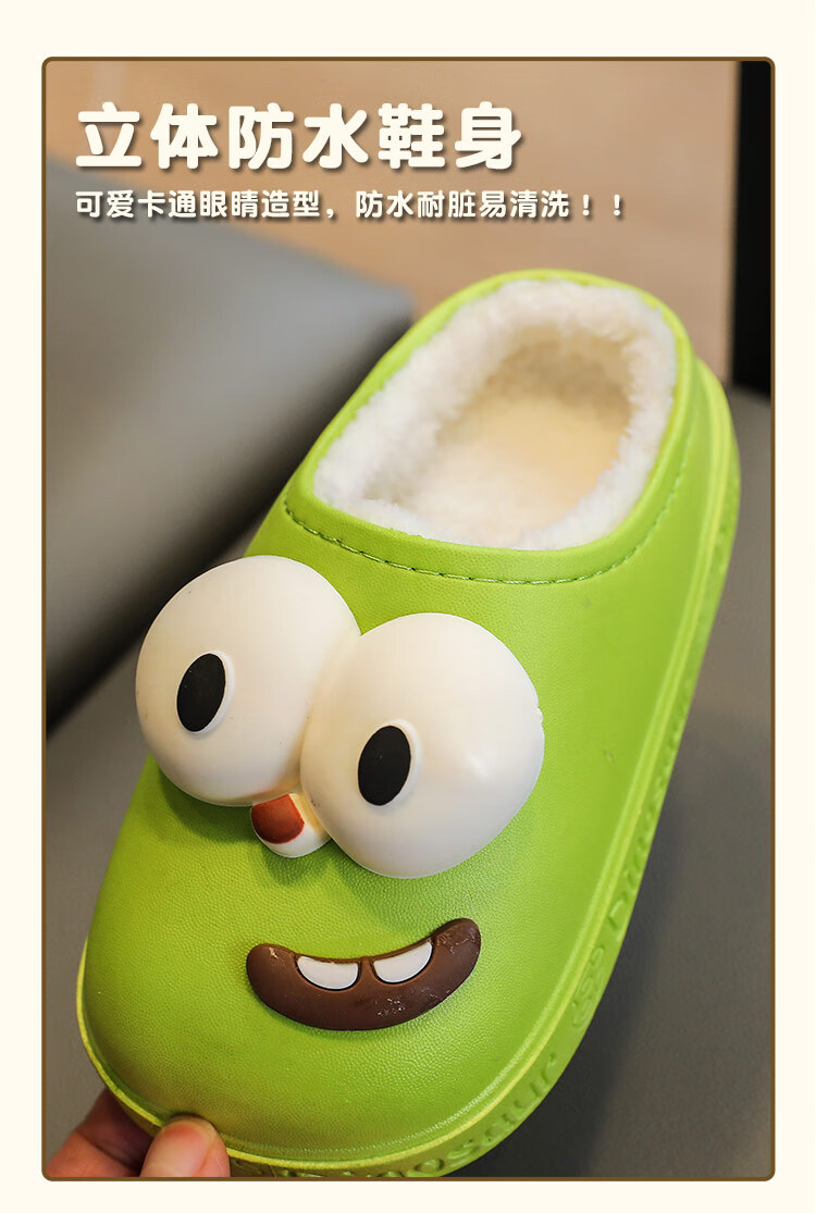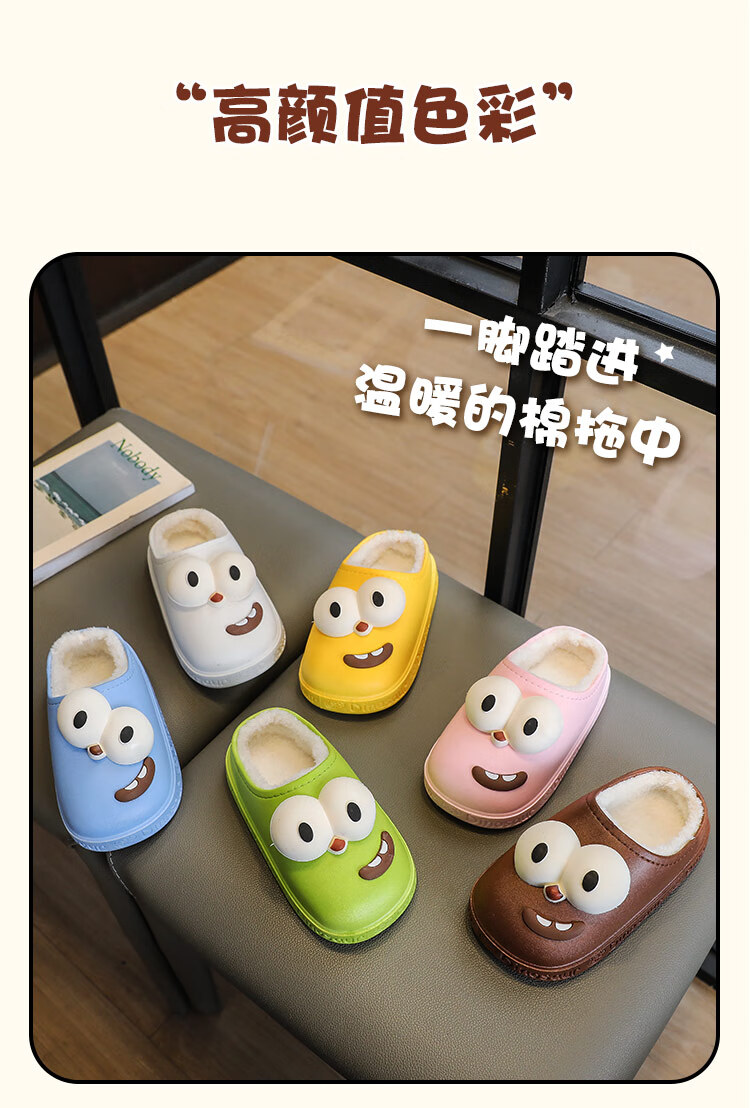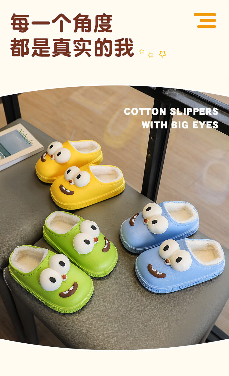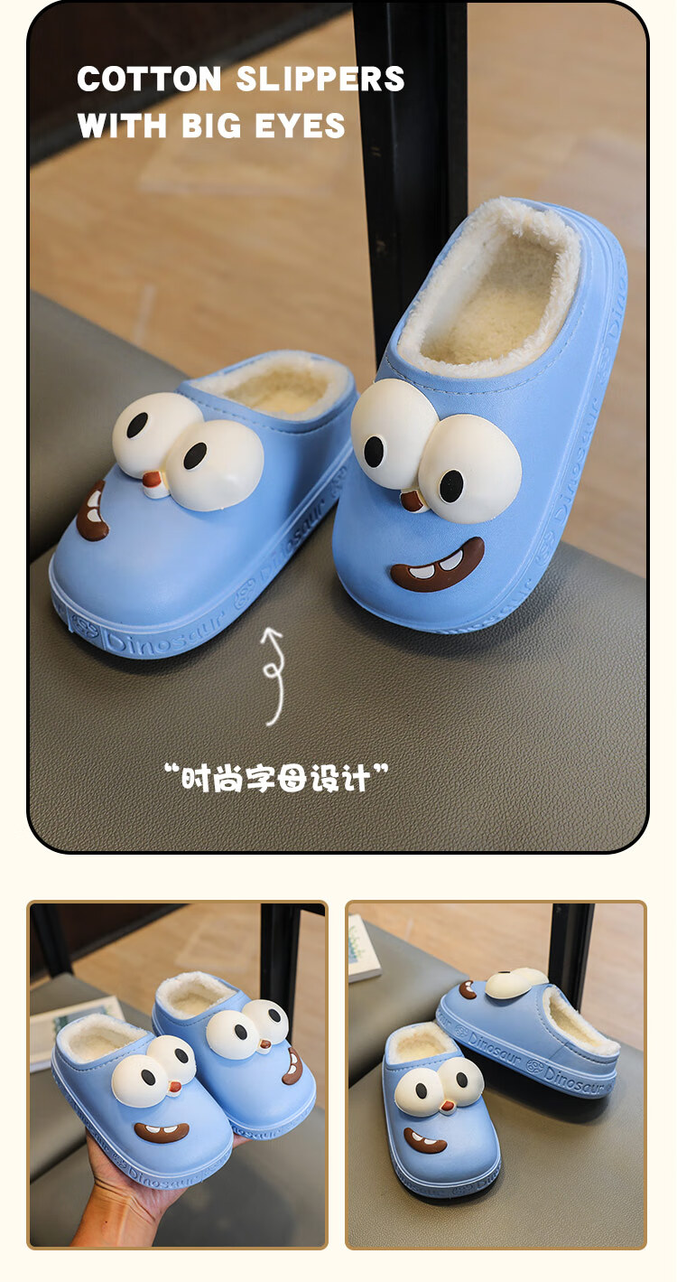 G.duck children's cotton slippers for boys and girls in winter 2025 new cartoon cute big eyes household boys' hair slippers winter 36-37 (inner length about 22cm) 12 blue-big eyes cotton slippers e