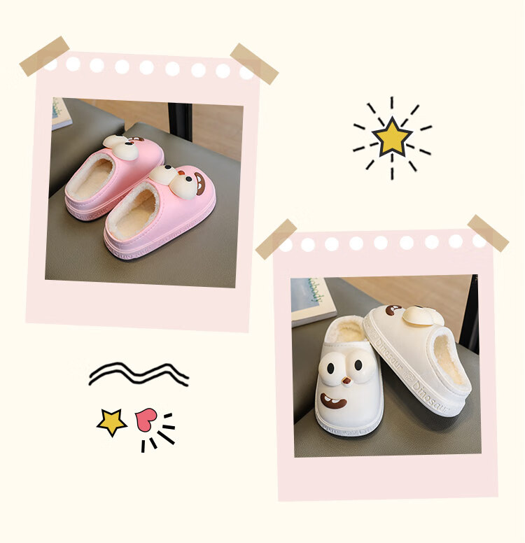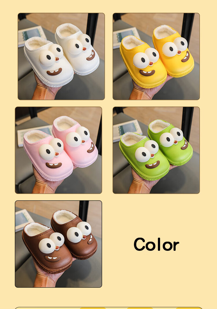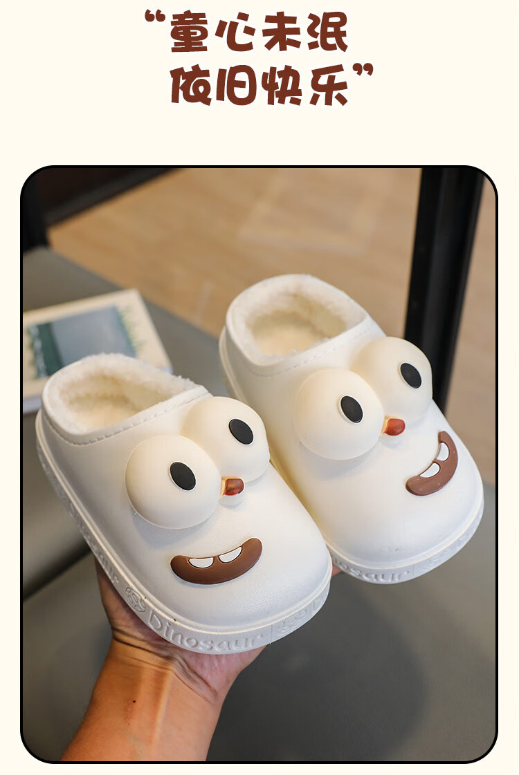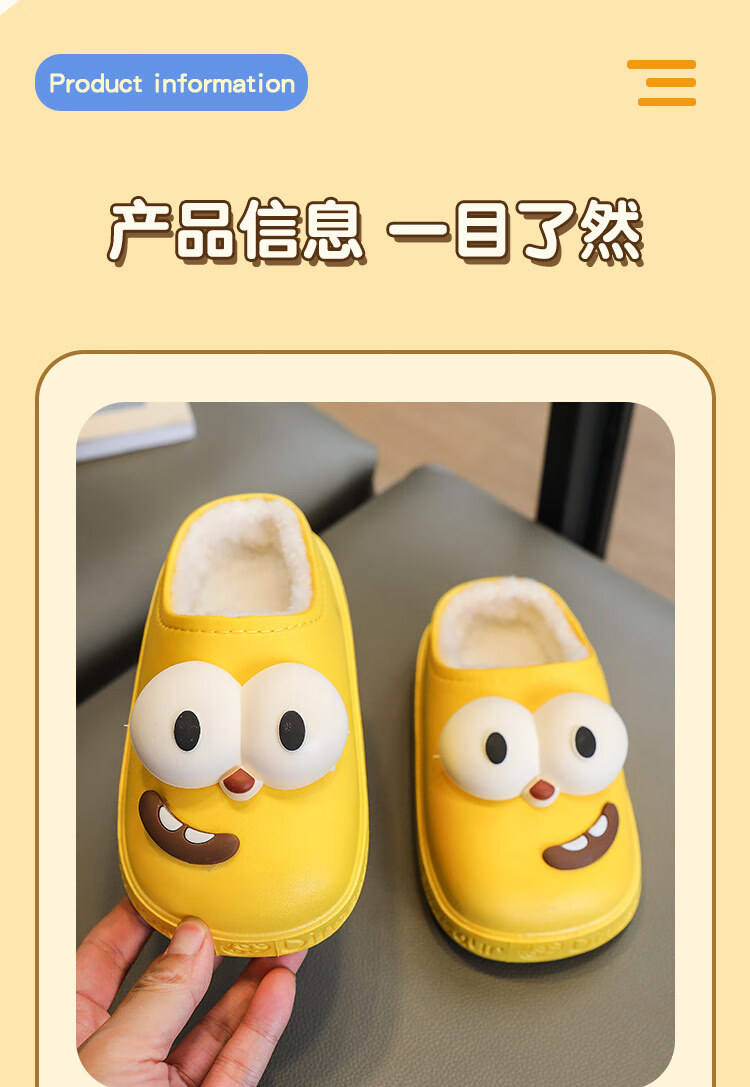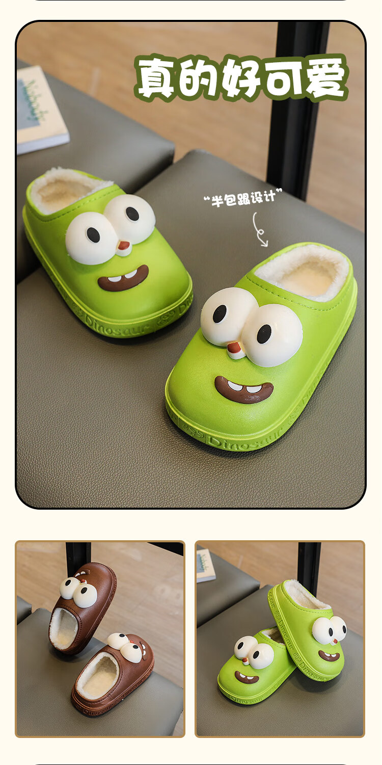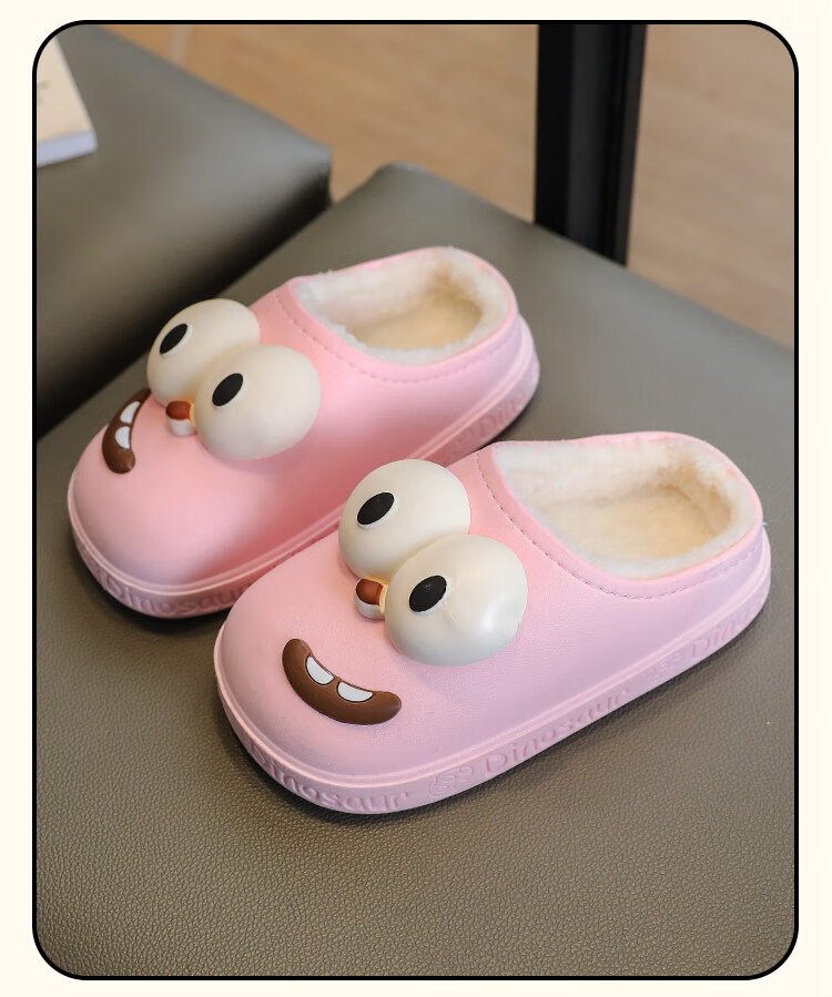 G.duck children's cotton slippers for boys and girls in winter 2025 new cartoon cute big eyes household boys' hair slippers winter 36-37 (inner length about 22cm) 12 blue-big eyes cotton slippers e