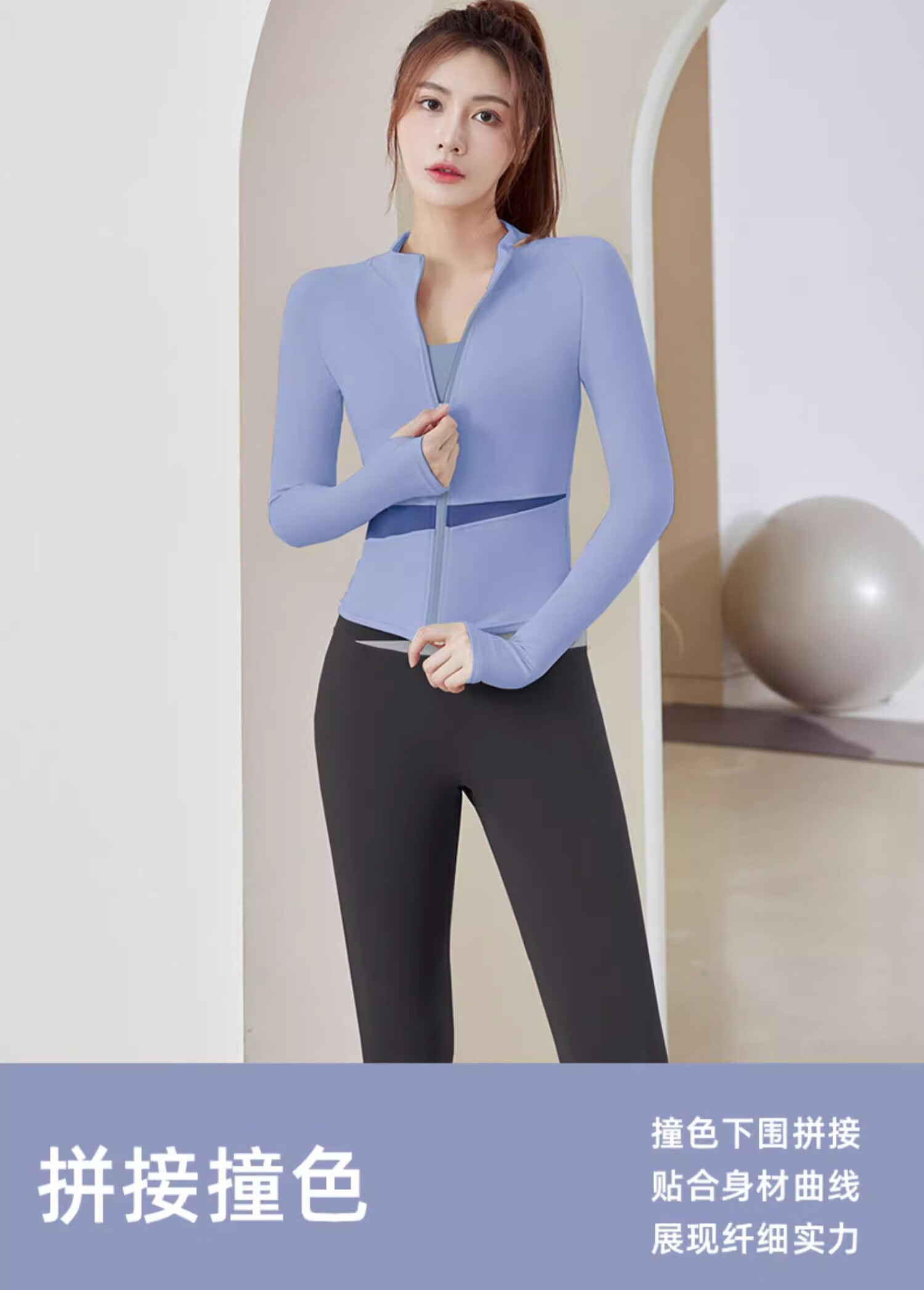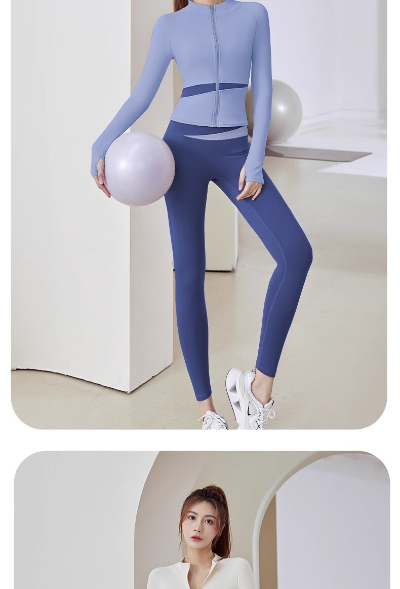LNGA LANDGRE yoga wear for women 2025 new long-sleeved sports fitness professional Pilates training large size top running suit autumn three-piece set ivory white + cocoa color M recommended 95-105 Jin Jin equals 0.5 kg